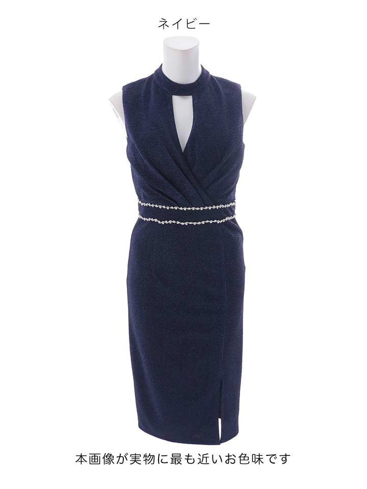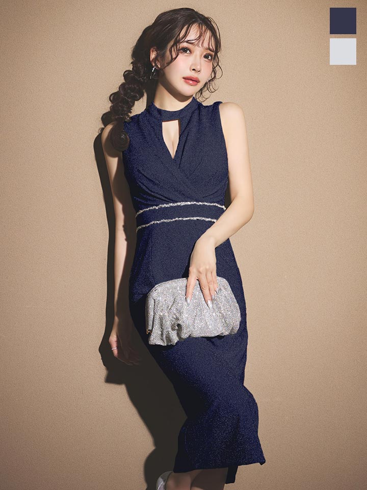 バストカットアウトラメタイトミディアムドレス/キャバドレス【S-Lサイズ/2カラー】[OF03] 【IM】 [J-989IM-260220-1]