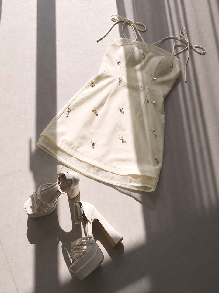 甘さたっぷりのフェミニンな雰囲気を纏う可愛いミニドレス。