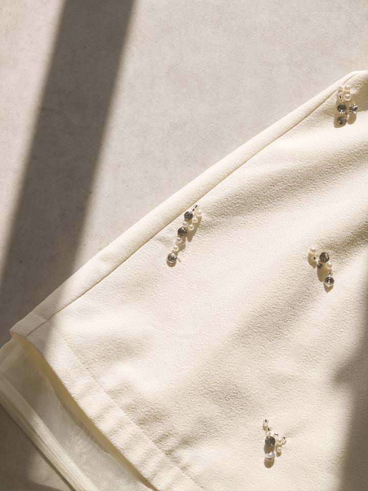 ドレス全体に散りばめられたビジューが動くたびにきらめき、華やかさと特別感をプラス。