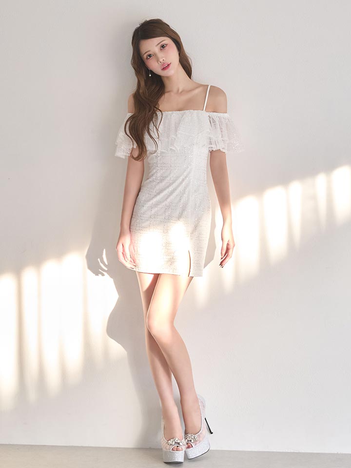 シフォンオフショルダータイトミニドレス/キャバドレス【XS-Mサイズ/1カラー】[OF04] [2150FS-260310-1]