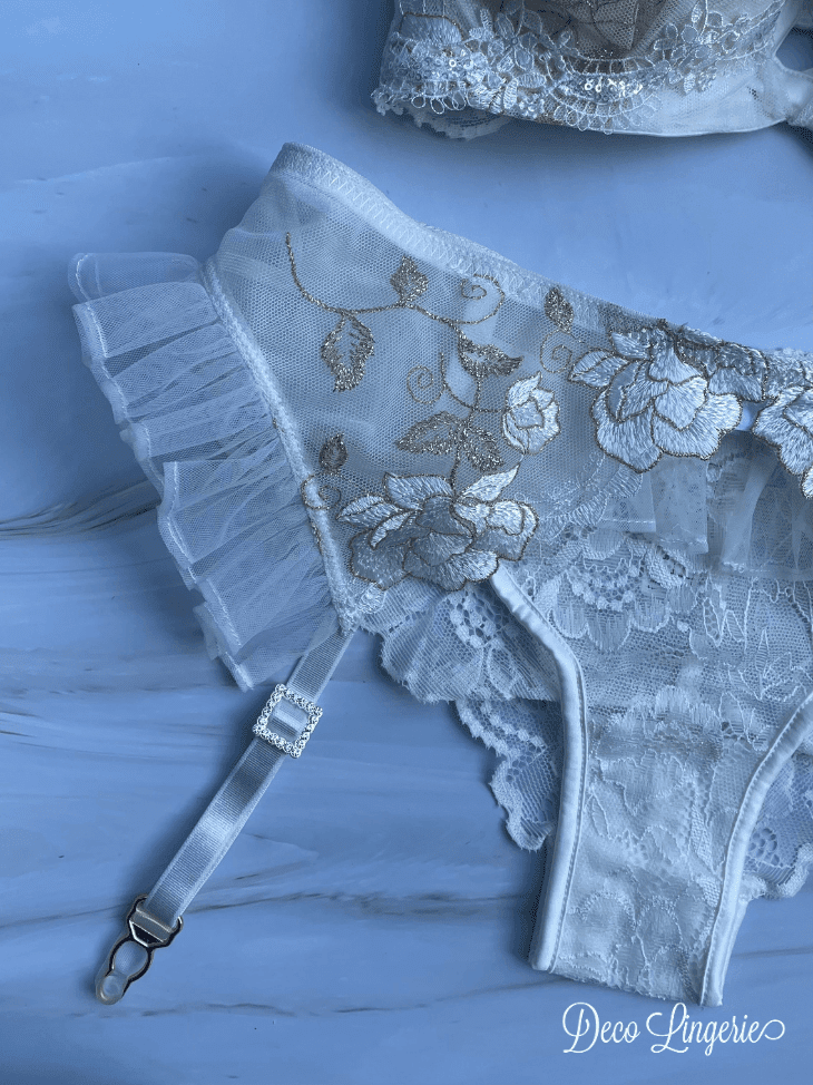 ビジューと刺繍チュールを使用しており お手入れの際には必ず手洗いにてカップ外側の装飾部分は極力濡らさないようにして頂きたいです。
