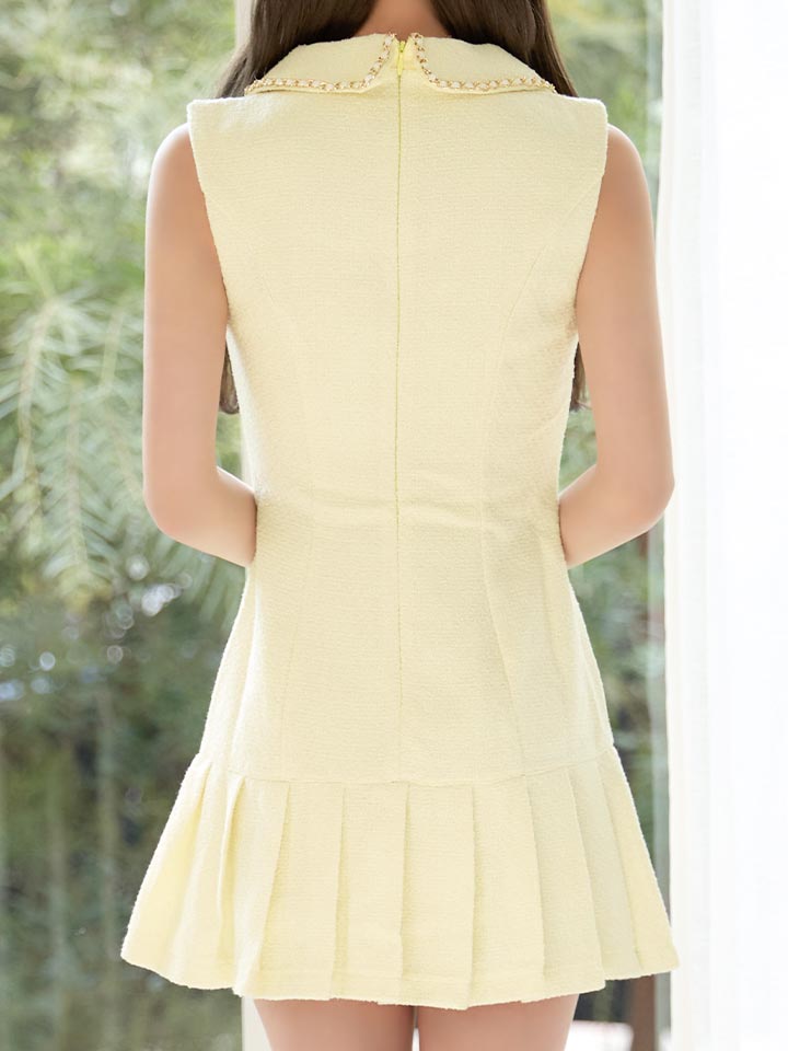 ノースリーブツイードプリーツミニドレス/キャバドレス【XS-XLサイズ/1カラー】[OF01] 【SB】dzw [AG3217SBdzw-260221-1]