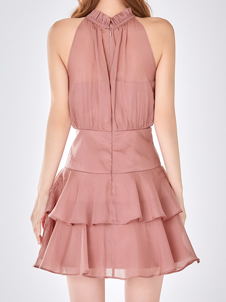 ティアードのフレアスカートがふんわりと広がり、可愛らしさの中に大人っぽさをプラス。