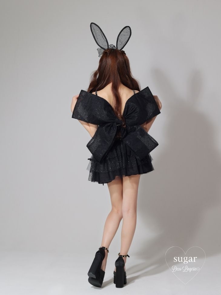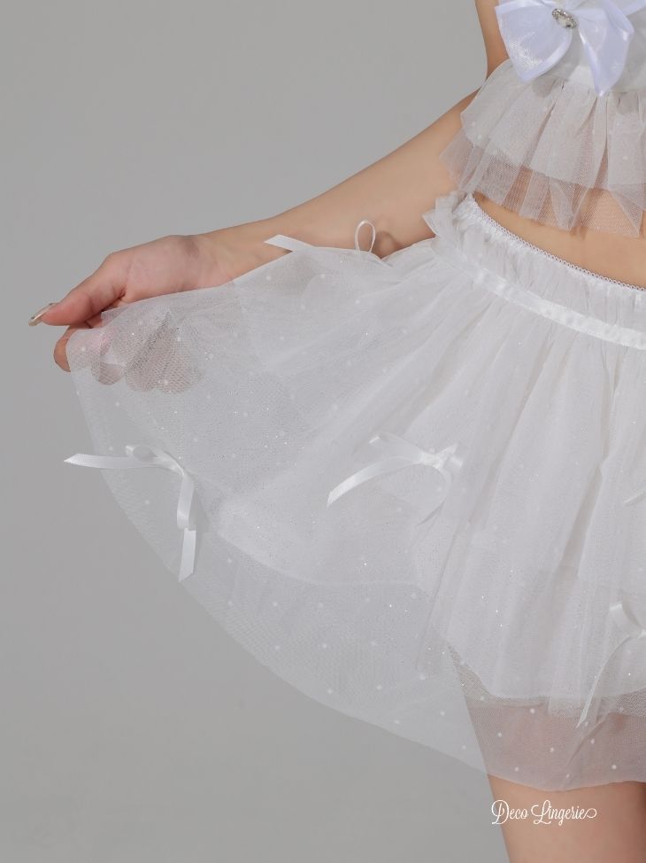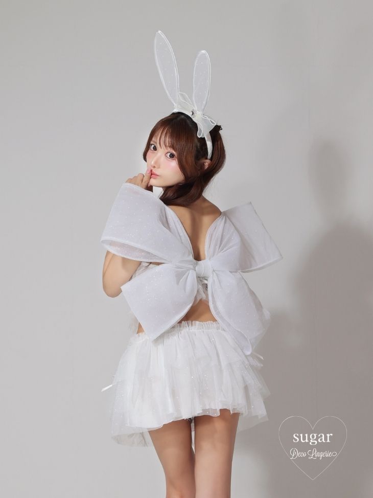 [セット内容] ブラ/チュールスカート/ペチコートパンツ/うさ耳カチューシャ/背中リボン