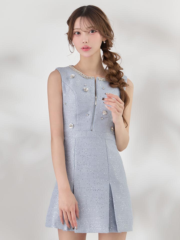 送料無料!【即日発送】新色登場!ジップアップフラワースパンコールツイードミニドレス/キャバドレス【XS-XLサイズ/3カラー】[OF01] 【SB】dzwvBF [8553SBdzwvBF-260227-1]