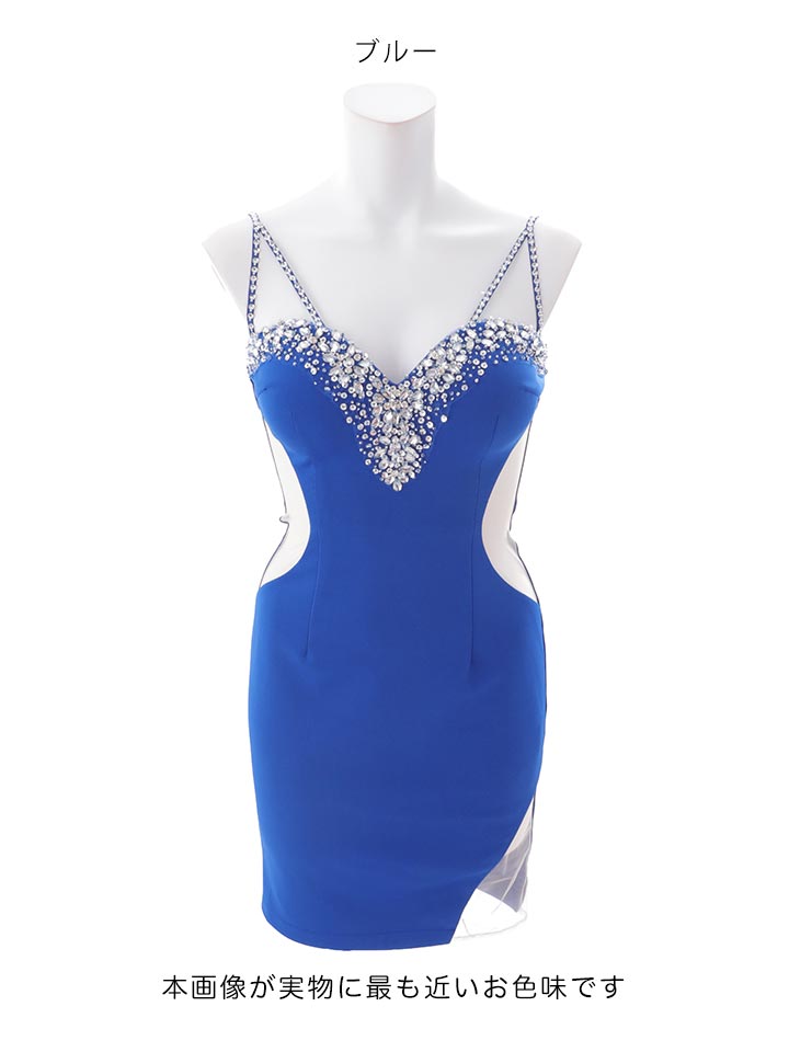 真優川咲・ゆめ着用キャバドレス胸元をビジューでゴージャスにあしらった注目間違いなしなミニドレス。