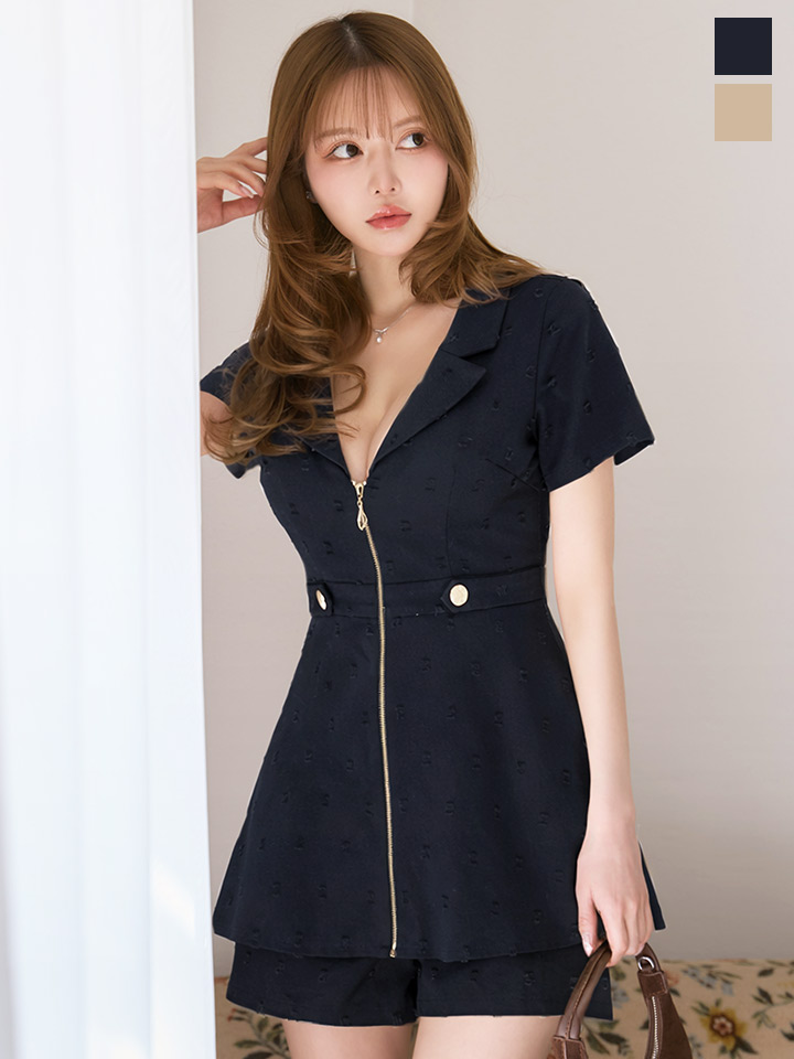 フロントジップショートパンツミニドレス/キャバドレス【XS-XLサイズ/2カラー】[OF03]【YN】dzjvAG [5887YNdzjvAG-260302-2]