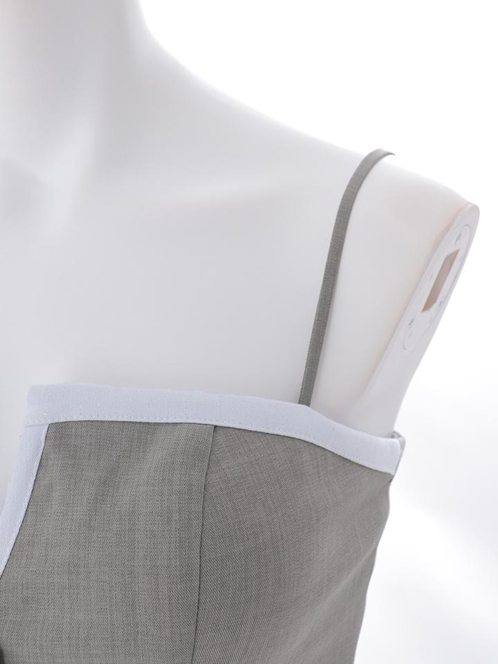 配色のパイピングラインが全体を引き締め、シンプルなのにしっかりおしゃれ見えするデザイン。
