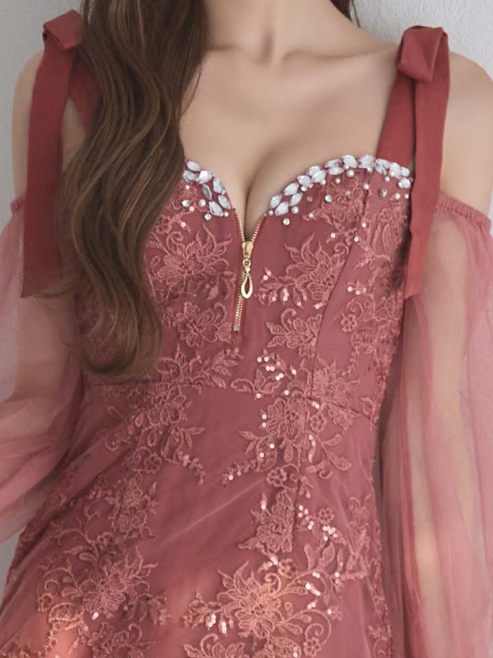リボンショルダー刺繍レースマーメイドドレス/キャバドレス【XS-Lサイズ/1カラー】[OF01] 【SB】dzjo [3183SBdzjo-260305-1]