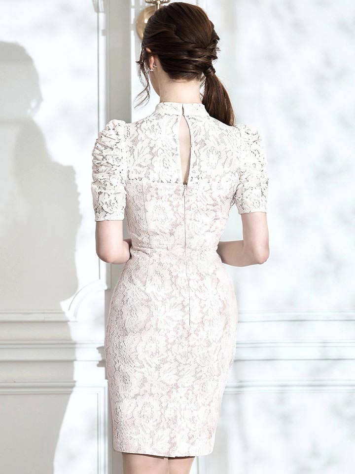 総レースネックリボンタイトミディアムドレス/キャバドレス【S-Lサイズ/4カラー】 [J90057H-260324-1]