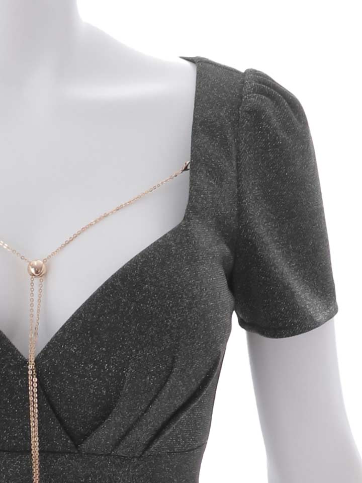 ラメ素材と胸元のチェーンが煌びやかさ◎