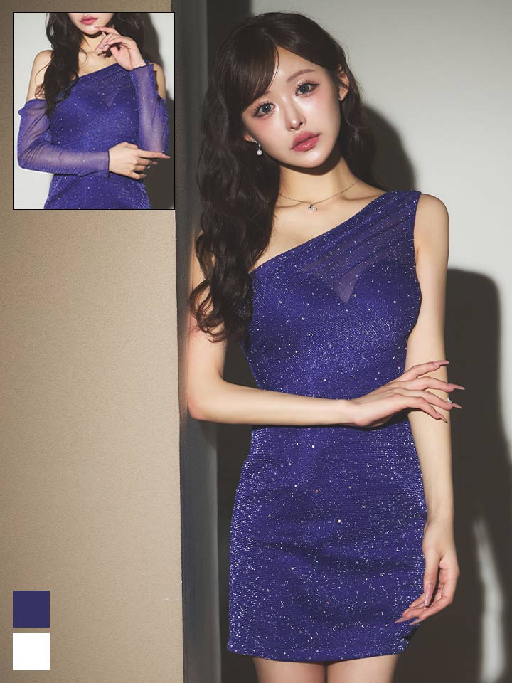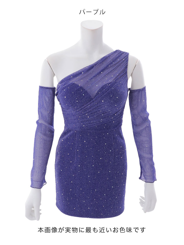 アームカバー付シアーラメビジューワンショルミニドレス/キャバドレス【XS-XLサイズ/2カラー】[OF03]【YN】dzmsCA [5919YNdzmsCA-260311-2]