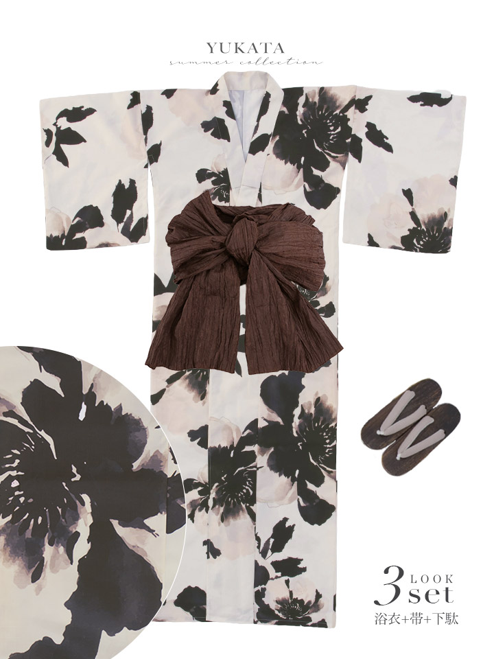【即日発送】墨の華浴衣【浴衣3点セット 浴衣/帯/下駄】[OF04] [Y-9380-sb-dzm-B-F-26AS-260312]