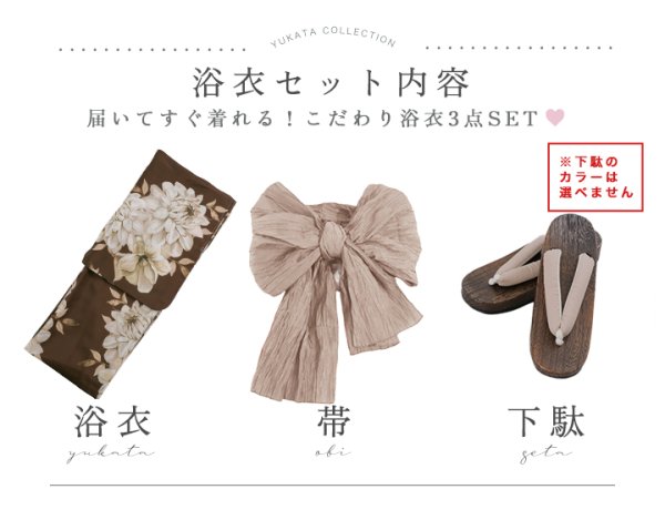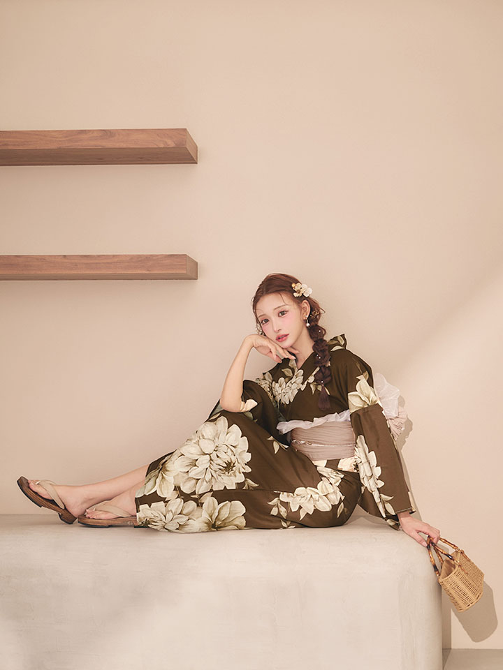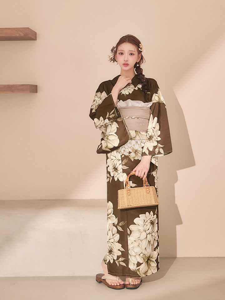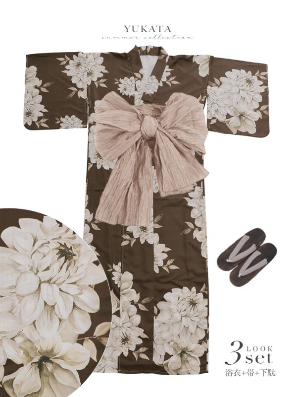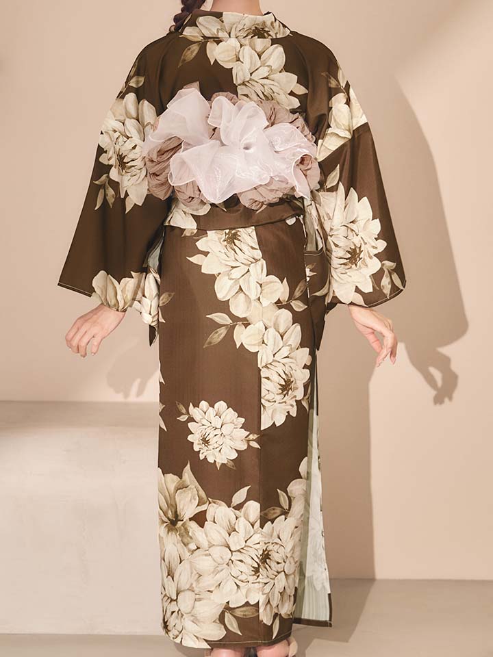 送料無料!大人ブラウンフラワー浴衣【浴衣3点セット 浴衣/帯/下駄】【予約 / 4月上旬発送予定】[OF04] [Y-9352-nz-dzjm-BR-F-26AS-260312]