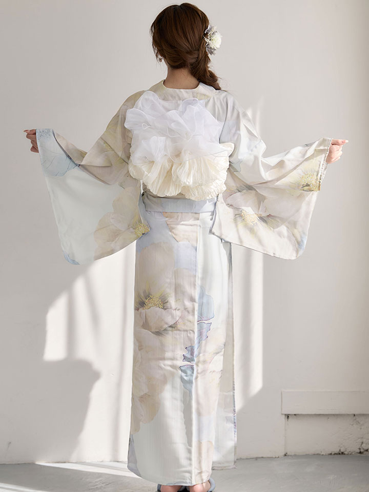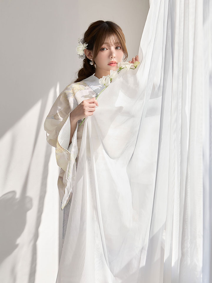 ホワイト系の帯や帯飾りでまとめて女の子らしさもプラス♥