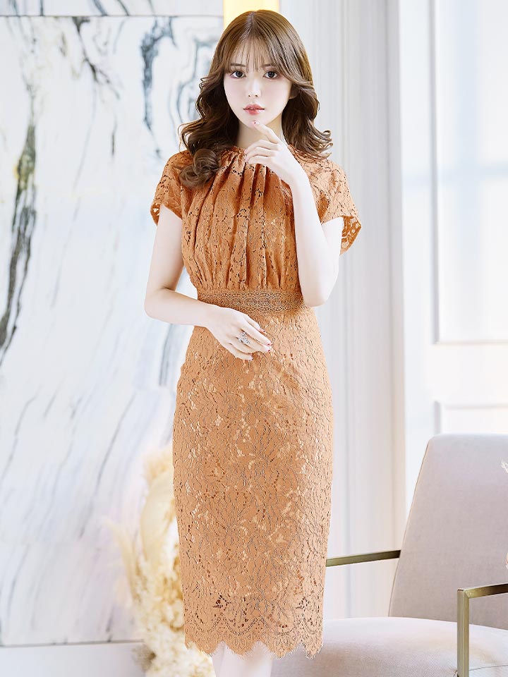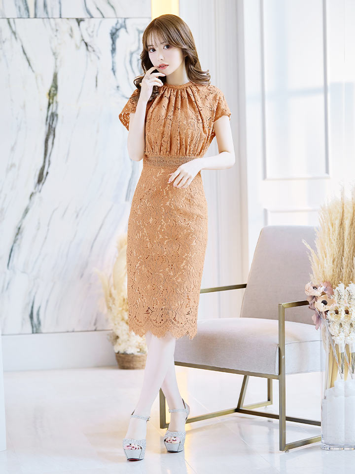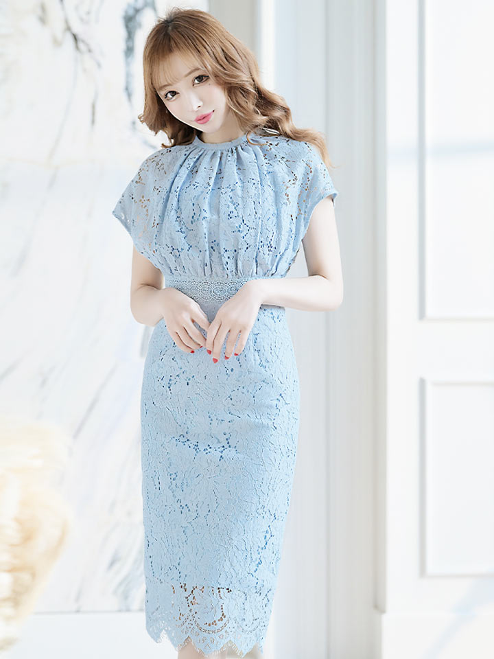 総レースハイネックタイトミディアムドレス/キャバドレス【S-Lサイズ/4カラー】 [J90050H-260319-2]