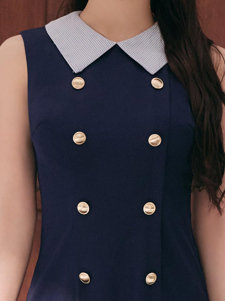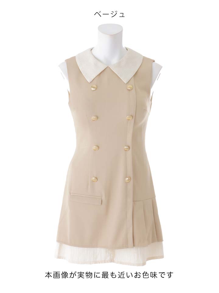 襟付き/ストライプ/ノースリーブ/スーツ生地/ボタン/プリーツスカート/ミニドレス/キャバドレス【XS-Mサイズ/2カラー】[OF03]【YN】dzyuIA [5920YNdzyuIA-260401-1]