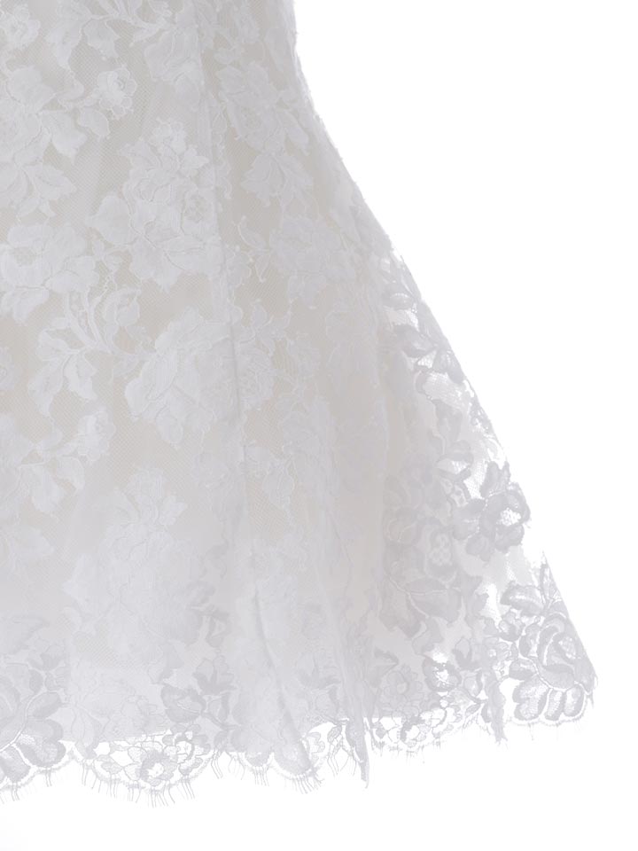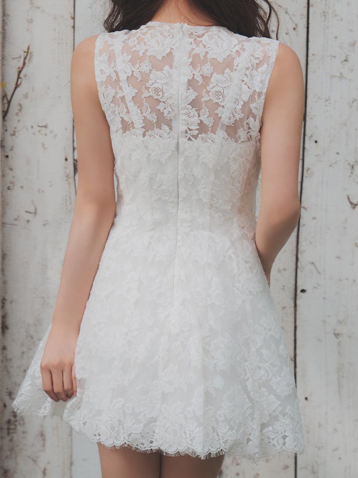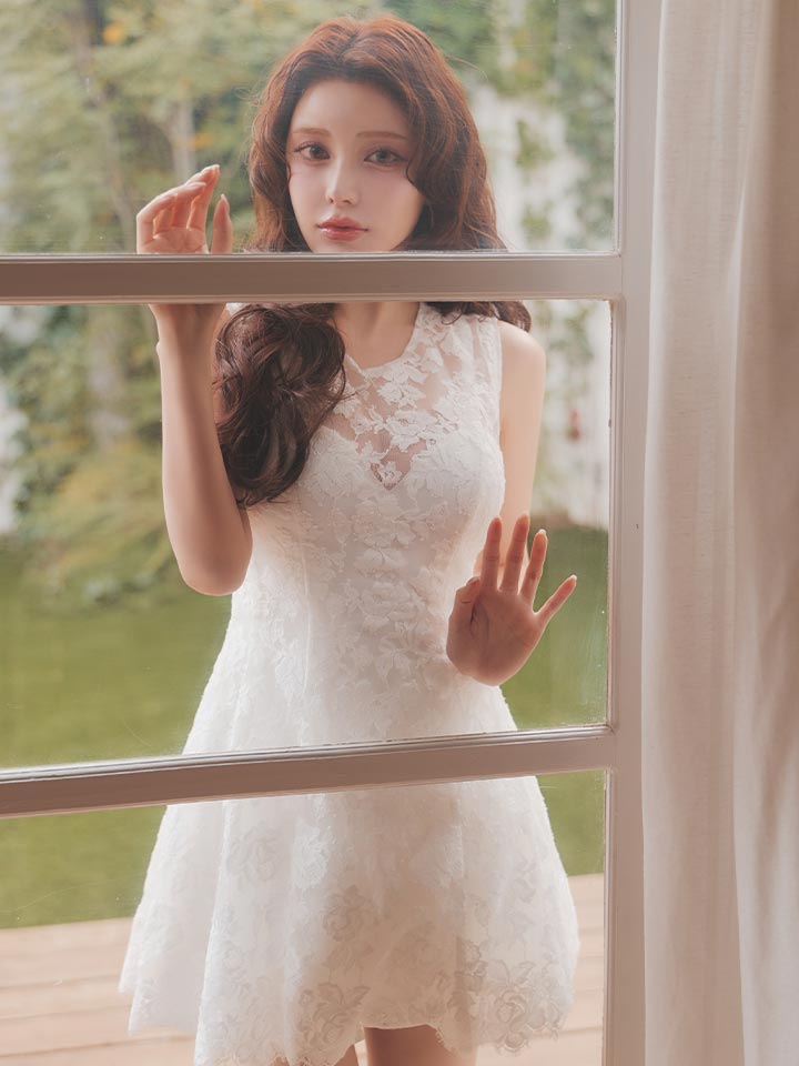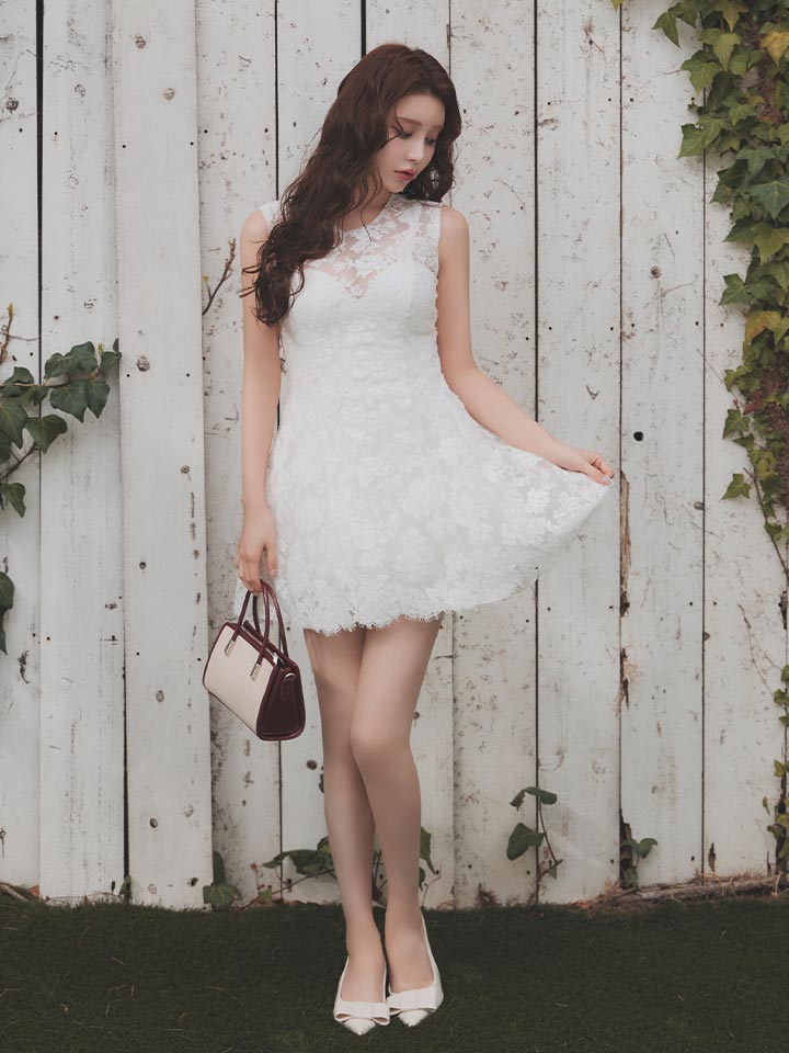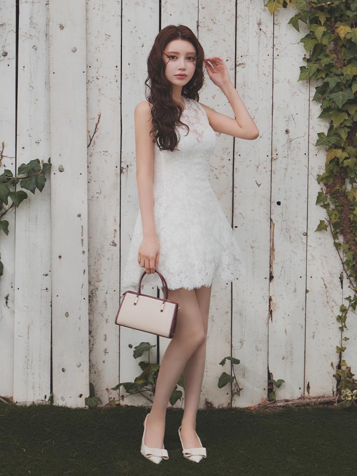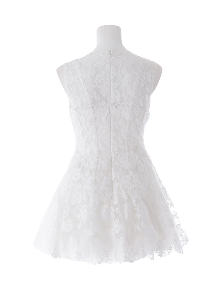 春らしい軽やかなレース素材を使用した、かわいさと上品さのバランスが魅力のミニドレス。
