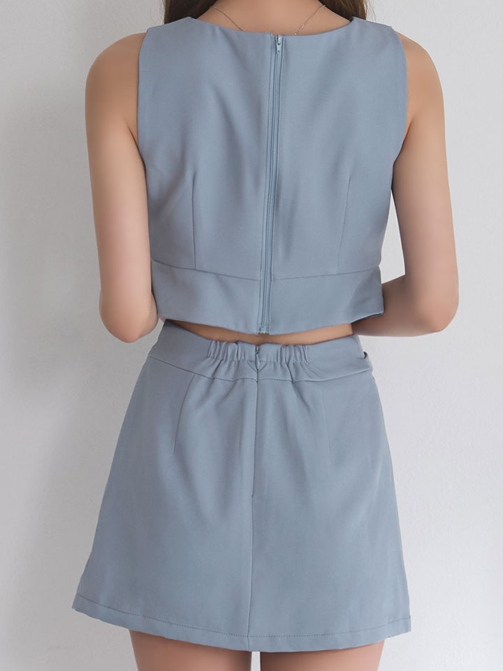 #グレー #ミニドレス/ミニ丈 #セットアップ(クロップド丈) #無地 #ノースリーブ #谷間見せ(魅せ) #胸元隠し(胸隠し) #背中隠し(ブラOK) #タイト #JEWELSトレンド #アシメスカート