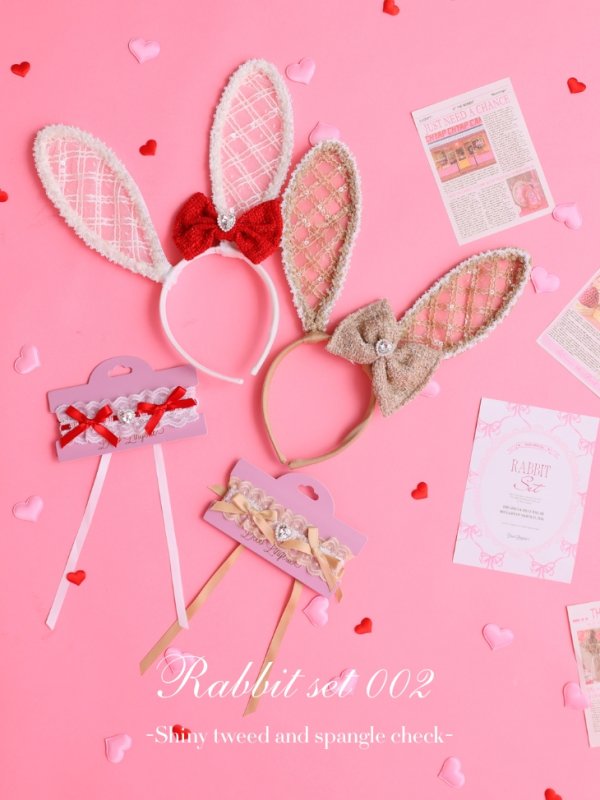 [セット内容] ウサ耳カチューシャ・チョーカー[素材] スパンコールレース・ツイードリボン