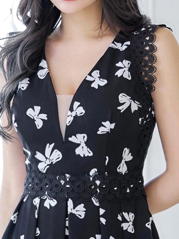 リボン/レース/ノースリーブ/バストシアー/フレア/Aライン/ミニドレス/キャバドレス【XS-Lサイズ/1カラー】[OF05] [J90060Y-260326-4]