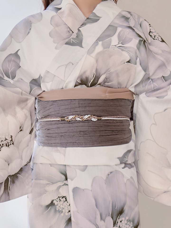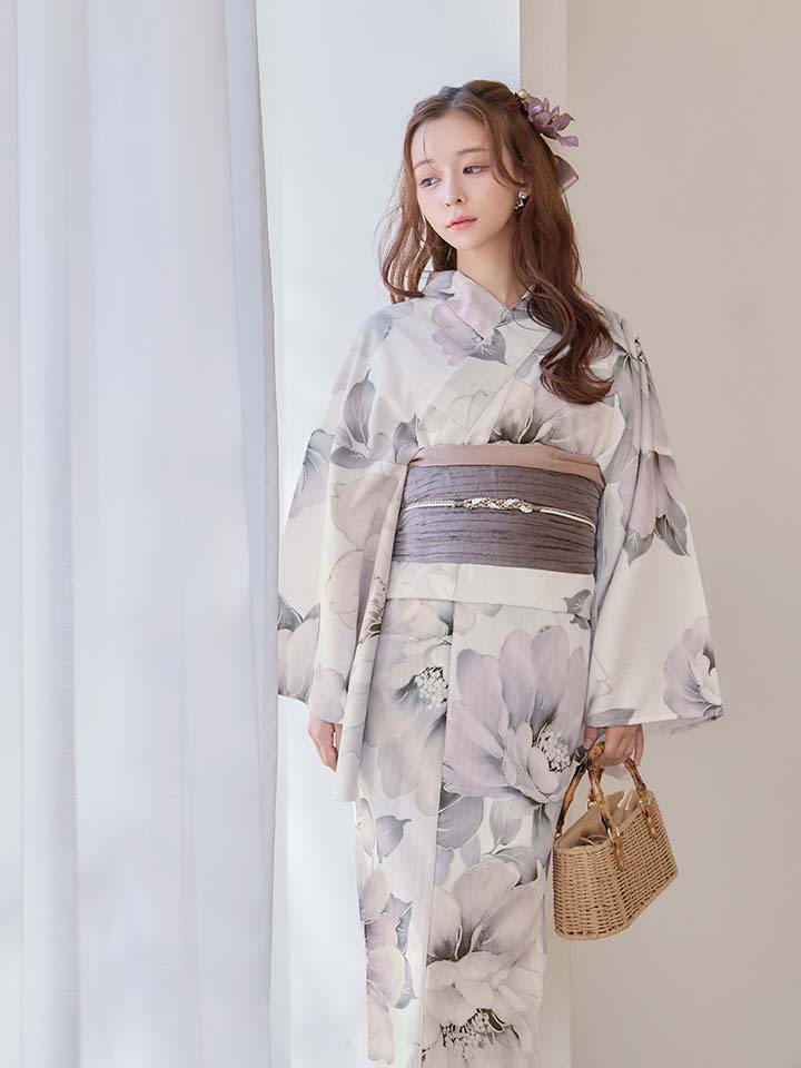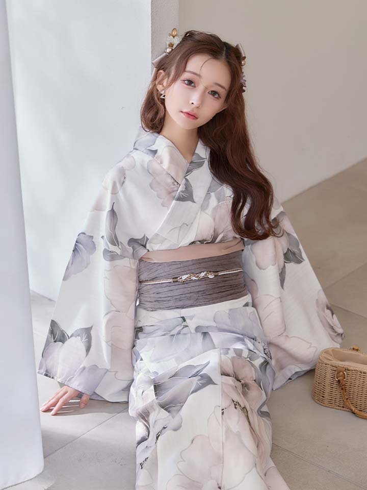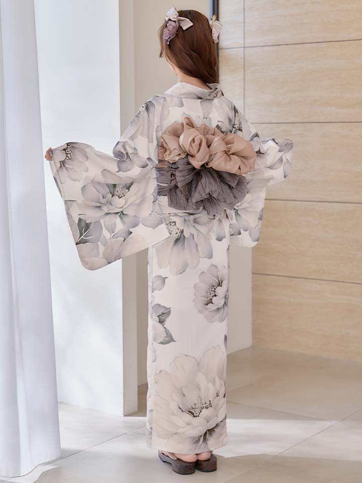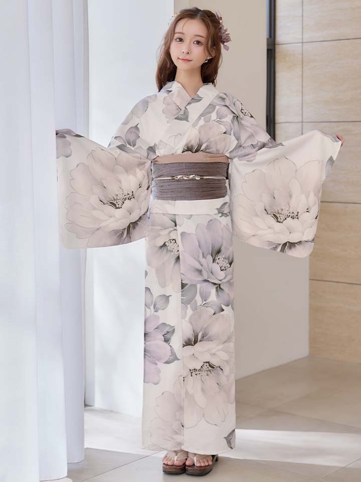 送料無料!グレージュニュアンスピオニー浴衣【浴衣3点セット 浴衣/帯/下駄】[OF04]【予約 / 4月上旬発送予定】 [Y-9351-nz-dzm-GY-F-260331CC]