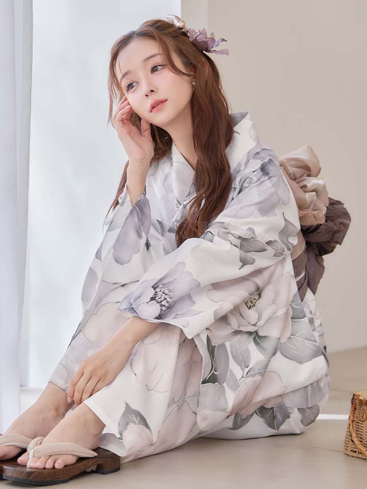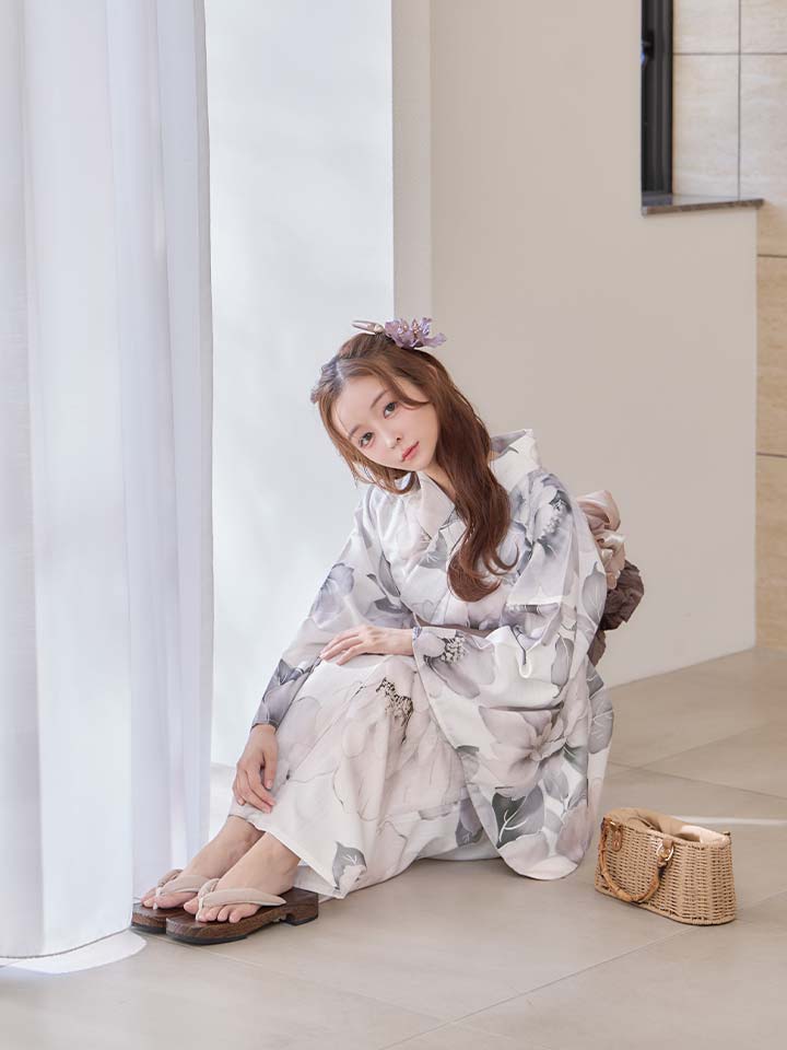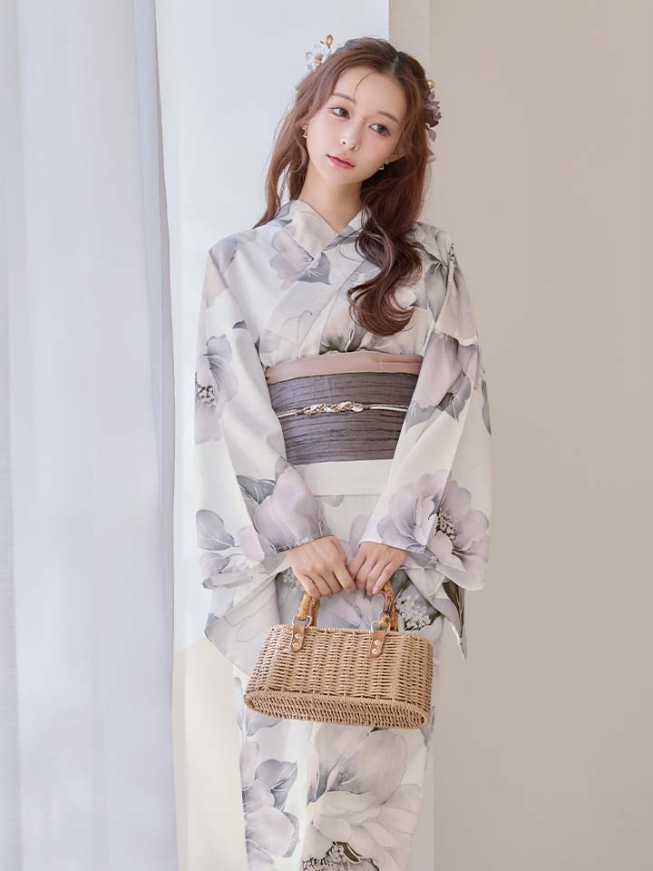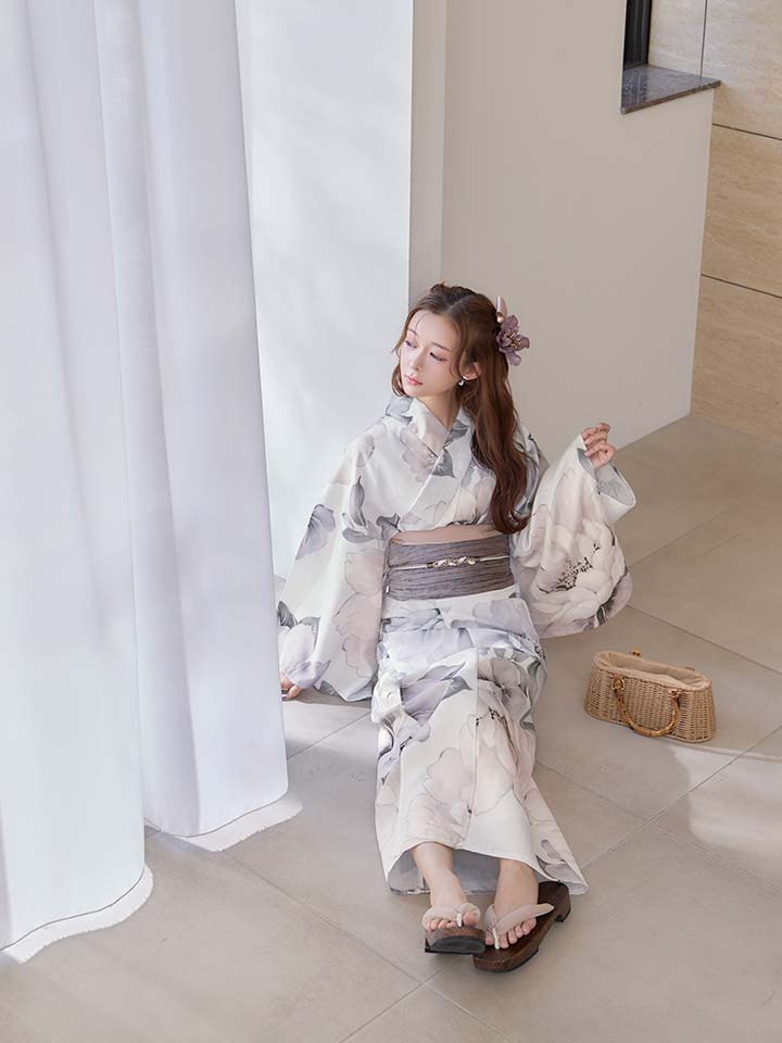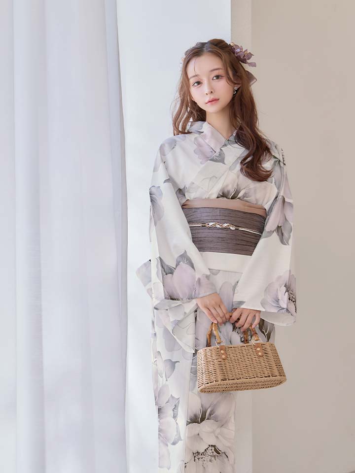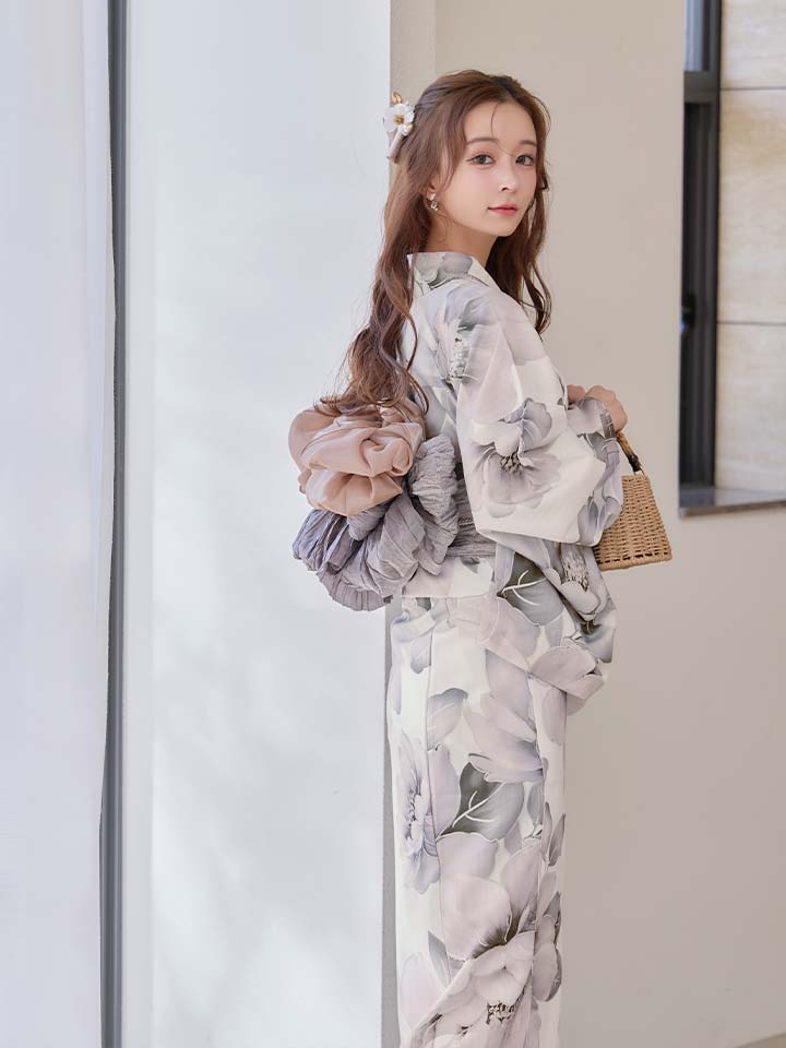 送料無料!グレージュニュアンスピオニー浴衣【浴衣3点セット 浴衣/帯/下駄】[OF04]【予約 / 4月上旬発送予定】 [Y-9351-nz-dzm-GY-F-260331CC]