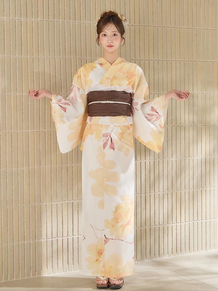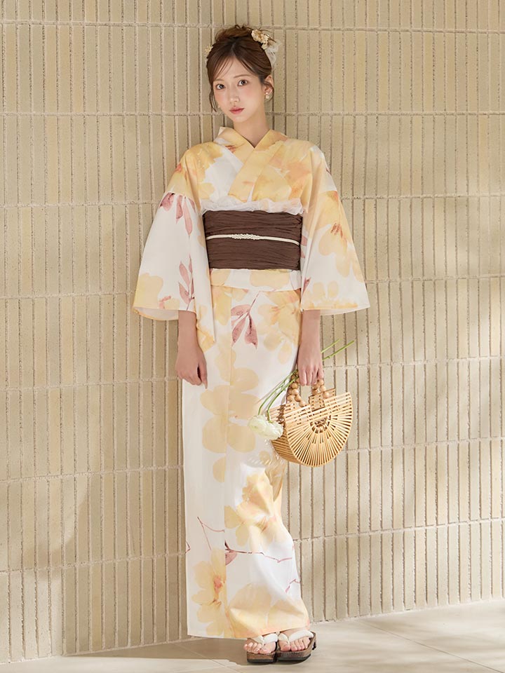 【即日発送】淡色イエローフラワー浴衣【浴衣3点セット 浴衣/帯/下駄】[OF04] [Y-9379-sb-dzjm-Y-F-260331CC]