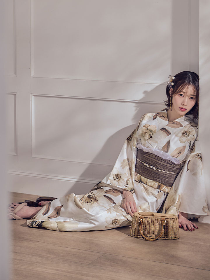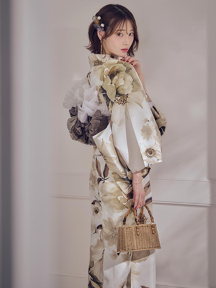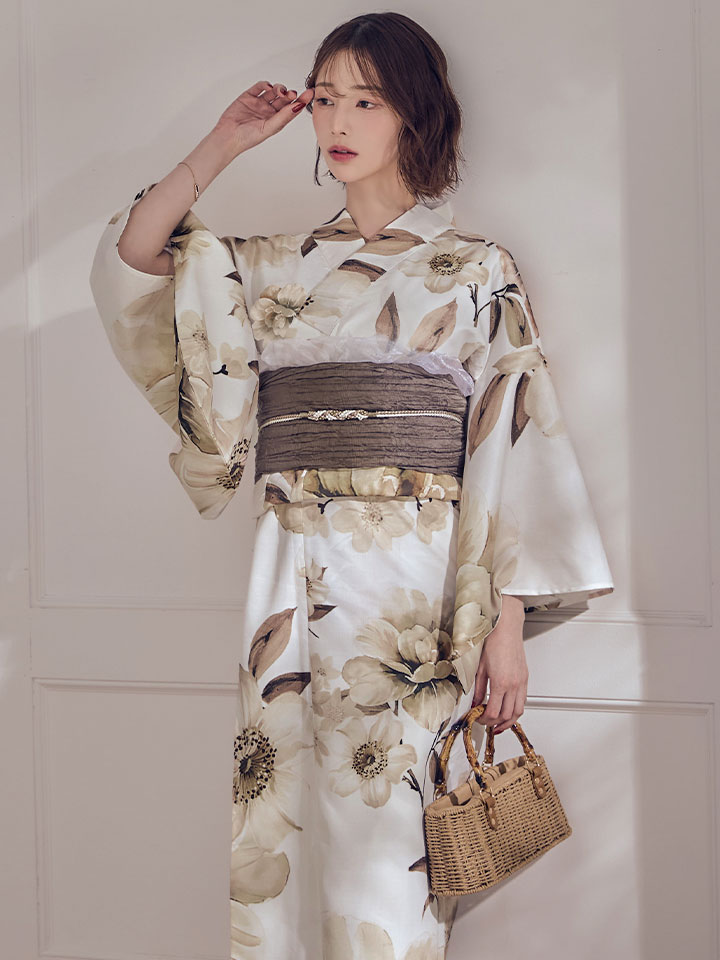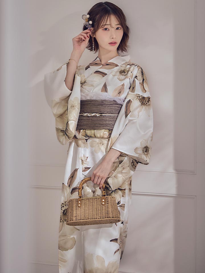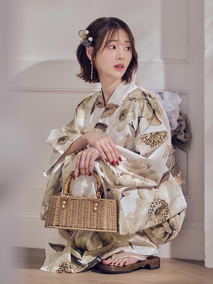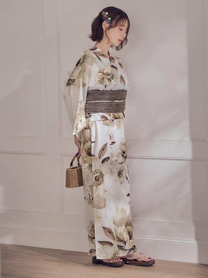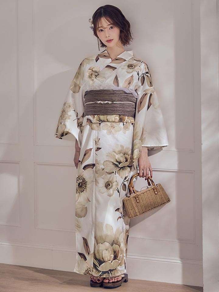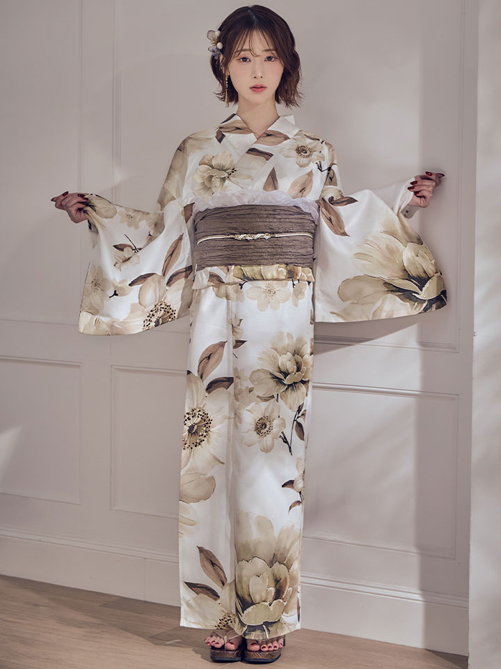 【即日発送】ホワイトエレガントフラワー浴衣【浴衣3点セット 浴衣/帯/下駄】[OF04] [Y-9373-sb-dzjm-W-F-260331CC]