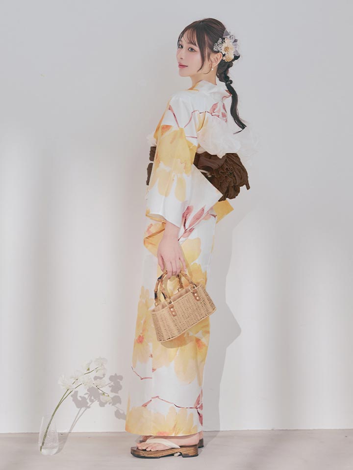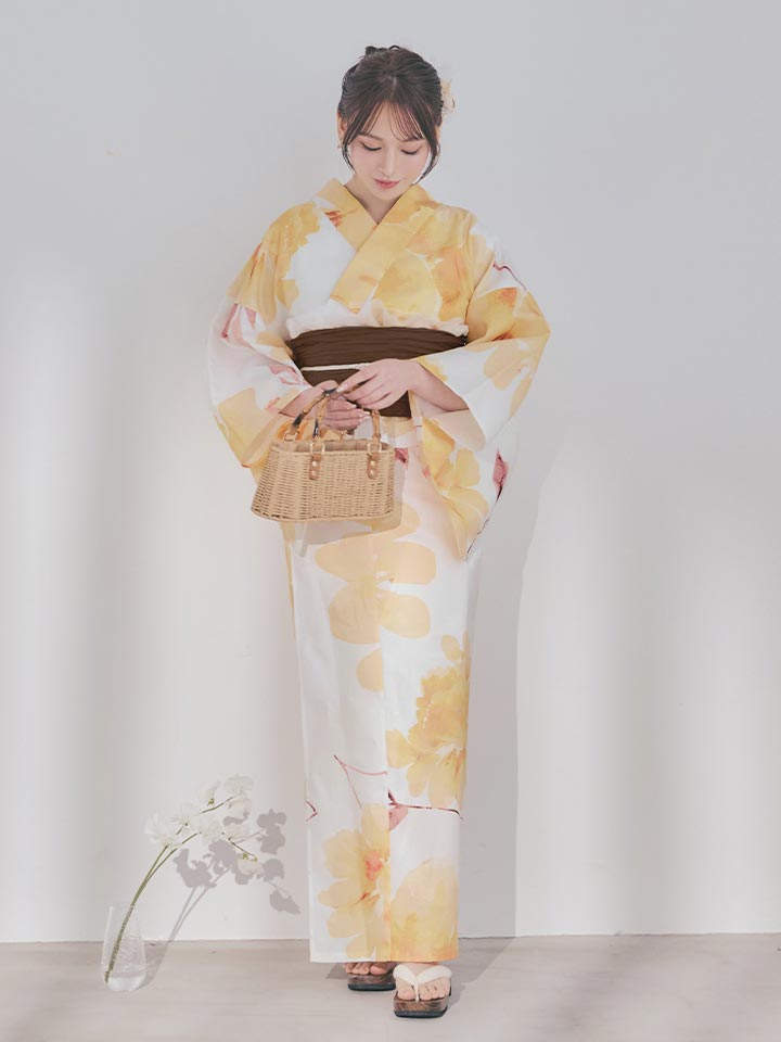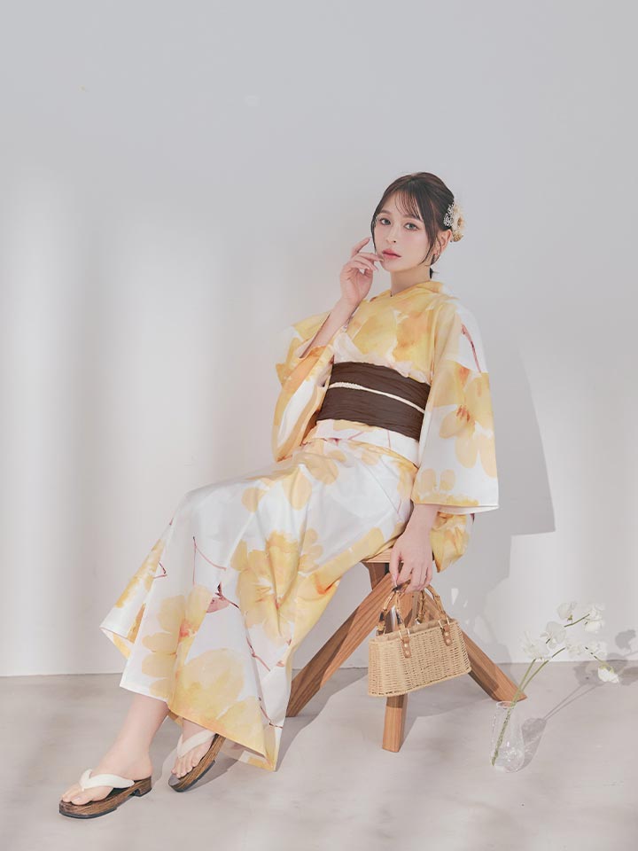ふんわりとしたイエローカラーが大人上品な浴衣。