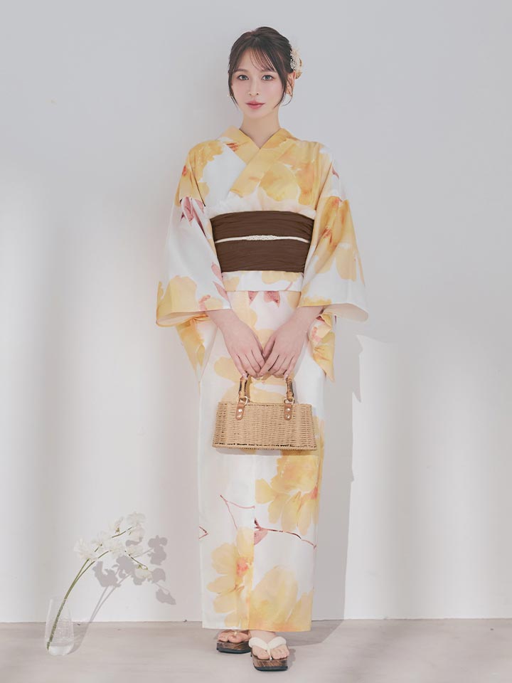 【即日発送】淡色イエローフラワー浴衣【浴衣3点セット 浴衣/帯/下駄】[OF04] [Y-9379-sb-dzjm-Y-F-26IE-260404]