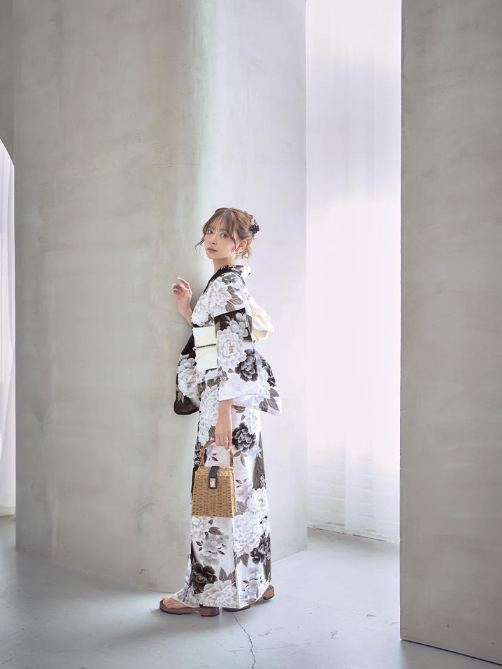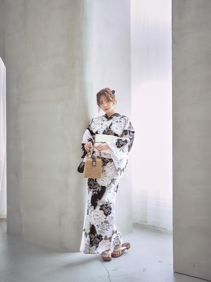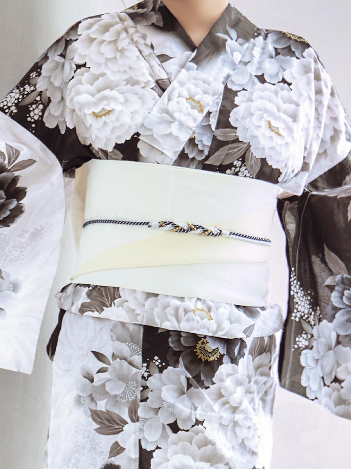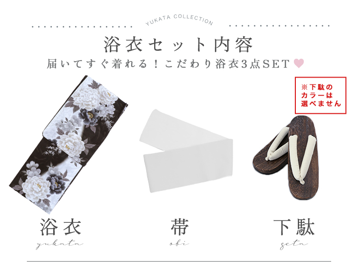 【即日発送】モノトーン牡丹【浴衣3点セット 浴衣/帯/下駄】[OF04] [Y-9417-ok-WxB-F-26PY-260404]
