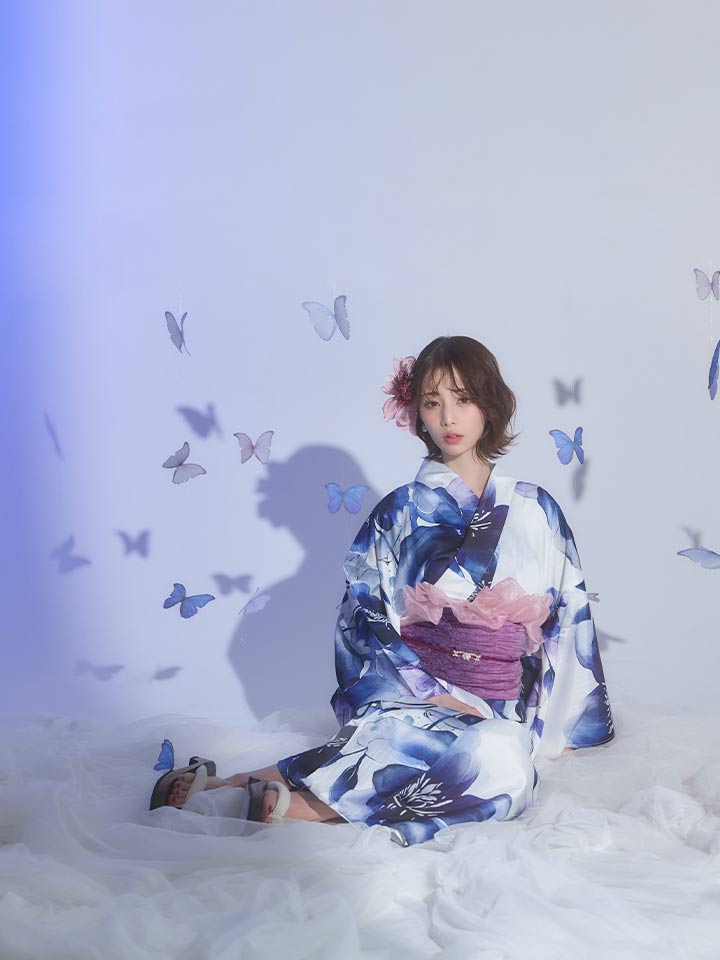 送料無料!藍水彩フラワー浴衣【浴衣3点セット 浴衣/帯/下駄】[OF04]【予約 / 4月下旬発送予定】 [Y-9435-nz-dzm-NV-F-26AM-260405-1]