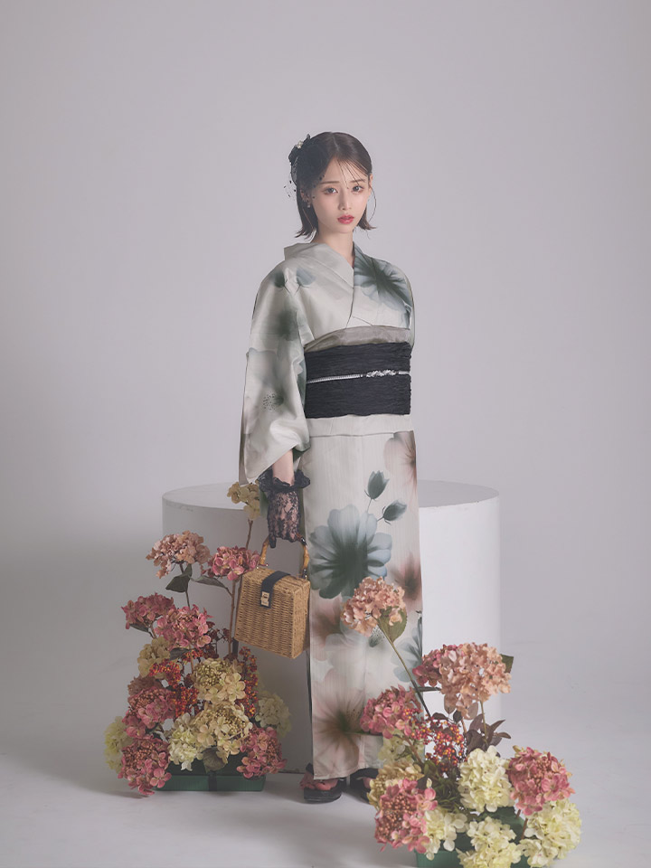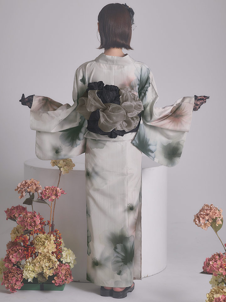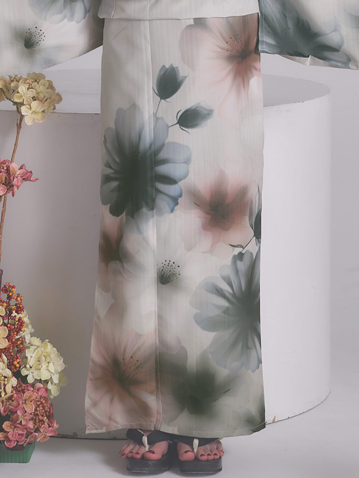 送料無料!水彩ニュアンスグレーコスモス浴衣【浴衣3点セット 浴衣/帯/下駄】[OF04]【予約 / 4月下旬発送予定】 [Y-9437-nz-dzm-GY-F-26AM-260405-1]