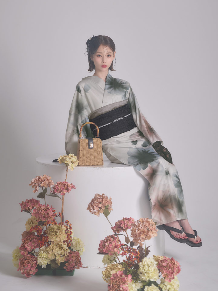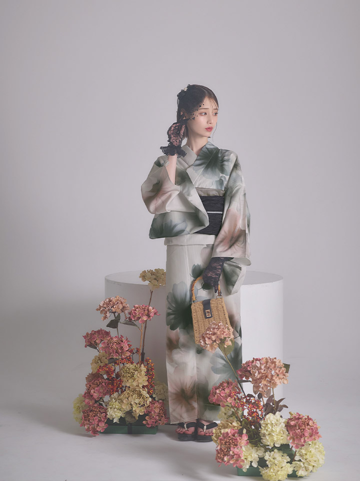 水彩画のような繊細な花々をあしらった「凛とした」一着。