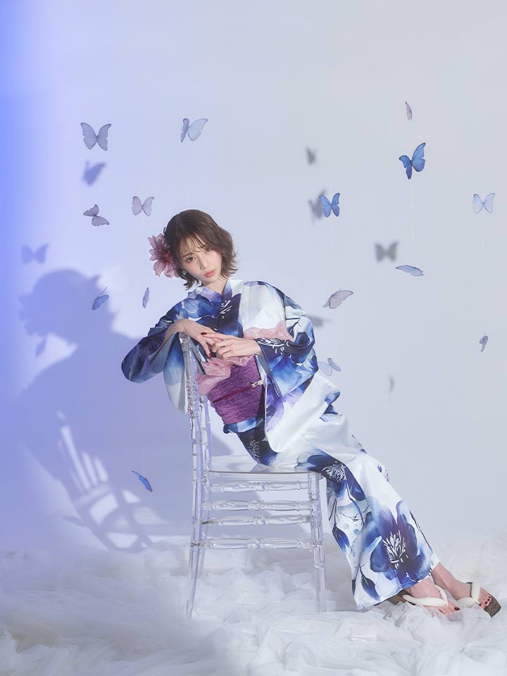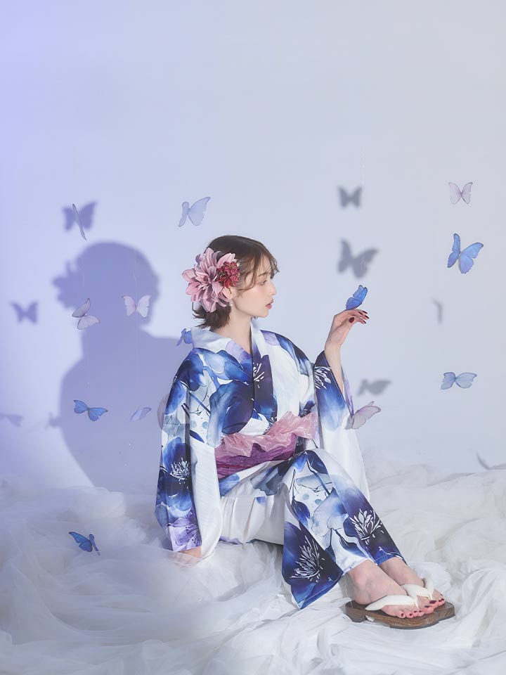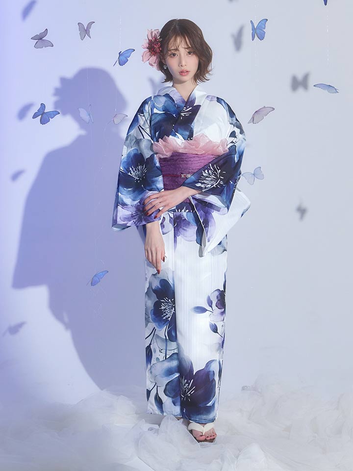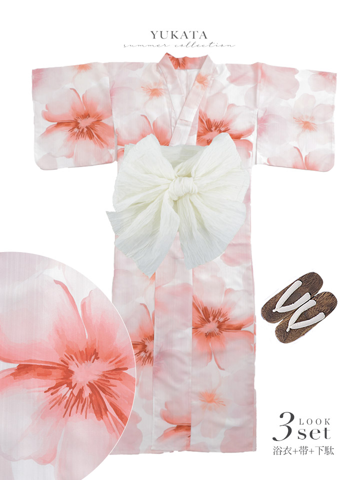 【コラボ浴衣】藍水彩フラワー浴衣/スウィート水彩ピンクコスモス浴衣【浴衣3点セット 浴衣/帯/下駄】【予約 / 4月下旬発送予定】 [Y-9435-nz-dzm-NV-F-Y-9433-nz-dzm-P-F-26AMMC-260405]