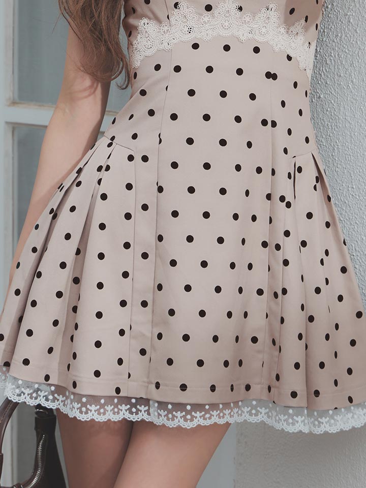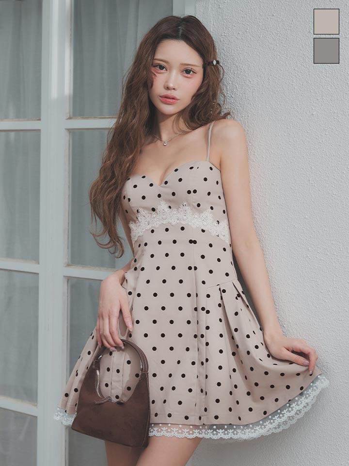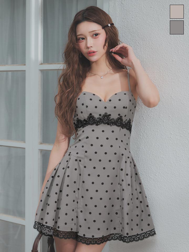 送料無料!ドット柄/キャミソール/谷間見せ/レース/スーツ生地/ドッキング/プリーツ/フレア/Aライン/ミニドレス/キャバドレス【S-Mサイズ/2カラー】【予約商品/4月下旬発送予定】[OF04]【SB】dzmuSK [3685SBdzmuSK-260413-1]