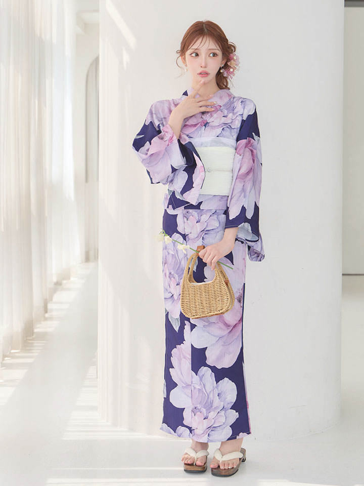 送料無料!ネイビーピオニー浴衣【浴衣3点セット 浴衣/帯/下駄】[OF04]【予約 / 5月中旬発送予定】 [Y-9357-nz-dzm-NV-F-26AS-260413]