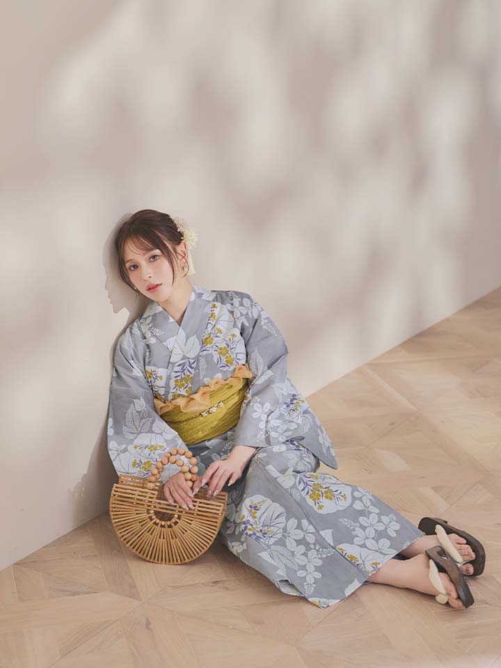 【即日発送】グレー×フラワー浴衣 【浴衣3点セット 浴衣/帯/下駄】[OF04] [Y-8086-ok-GY-F-26IE-260417]