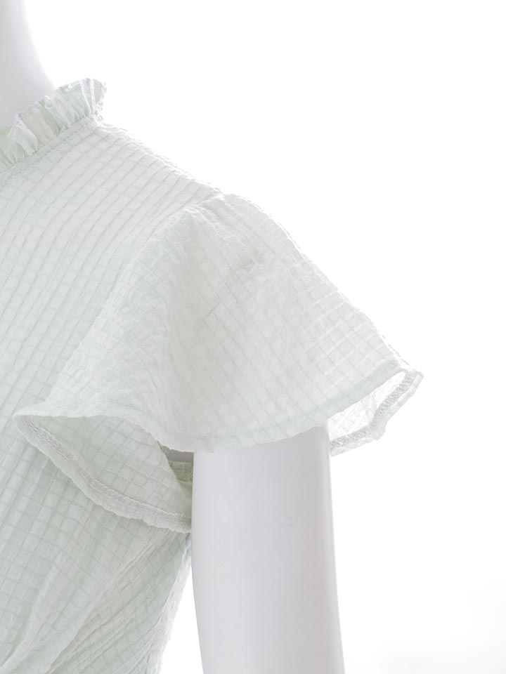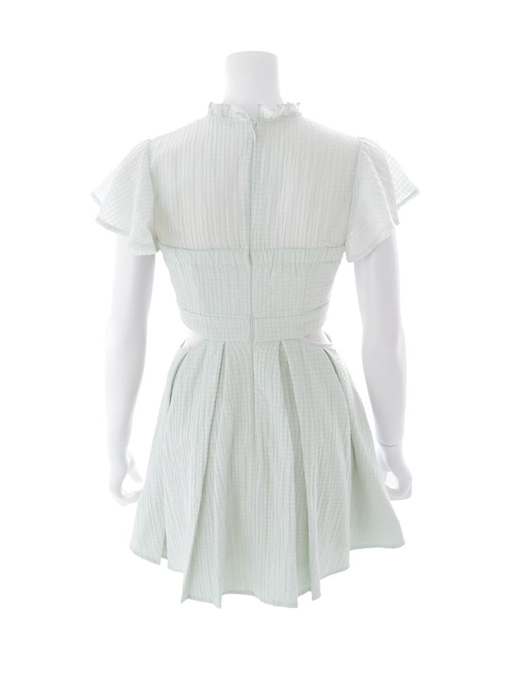 襟付き/シアー/ハイネック/ウエストカット/ギャザー/シフォン/ワッフル生地/プリーツスカート/Aライン/ミニドレス/キャバドレス【XS-Lサイズ/2カラー】[OF03]【YN】dzmvIA [5937YNdzmvIA-260420-2]