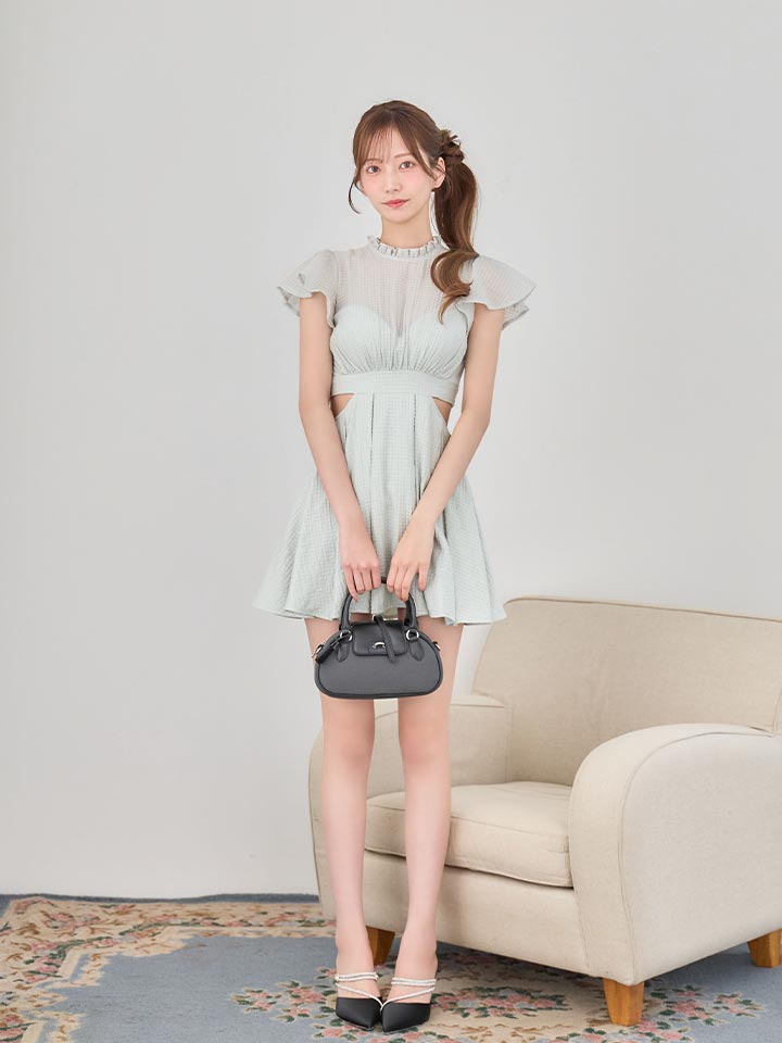 軽やかな素材感が魅力の胸とじデザインミニドレス。