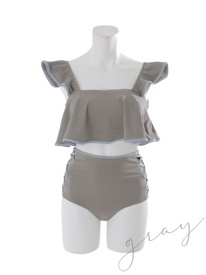 【ビキニ】【水着】フリル×バイカラー・ハイウエストビキニ 2点セット 2点セット[FB01]【予約 /6月上旬発送予定】 [M309dzq-BR-26MY-260423]