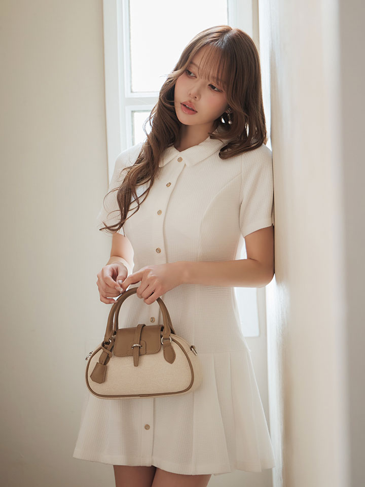襟付き/半袖/ボタン/ワッフル/プリーツ/ミニドレス/キャバドレス【XS-Mサイズ/1カラー】[OF03]【IM】dzmgIA [J-996IMdzmgIA-260427-1]