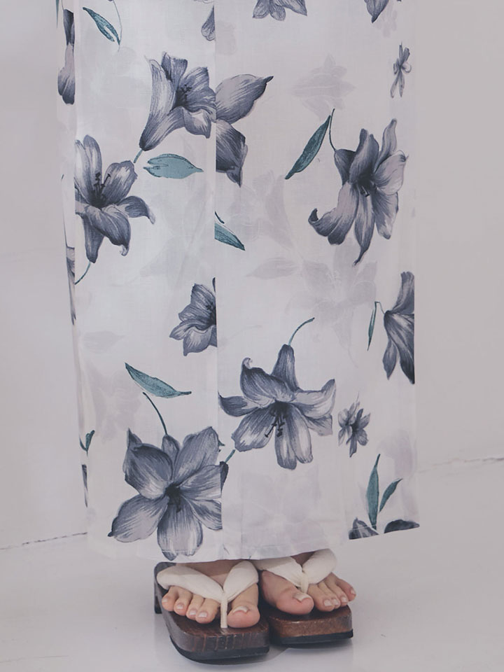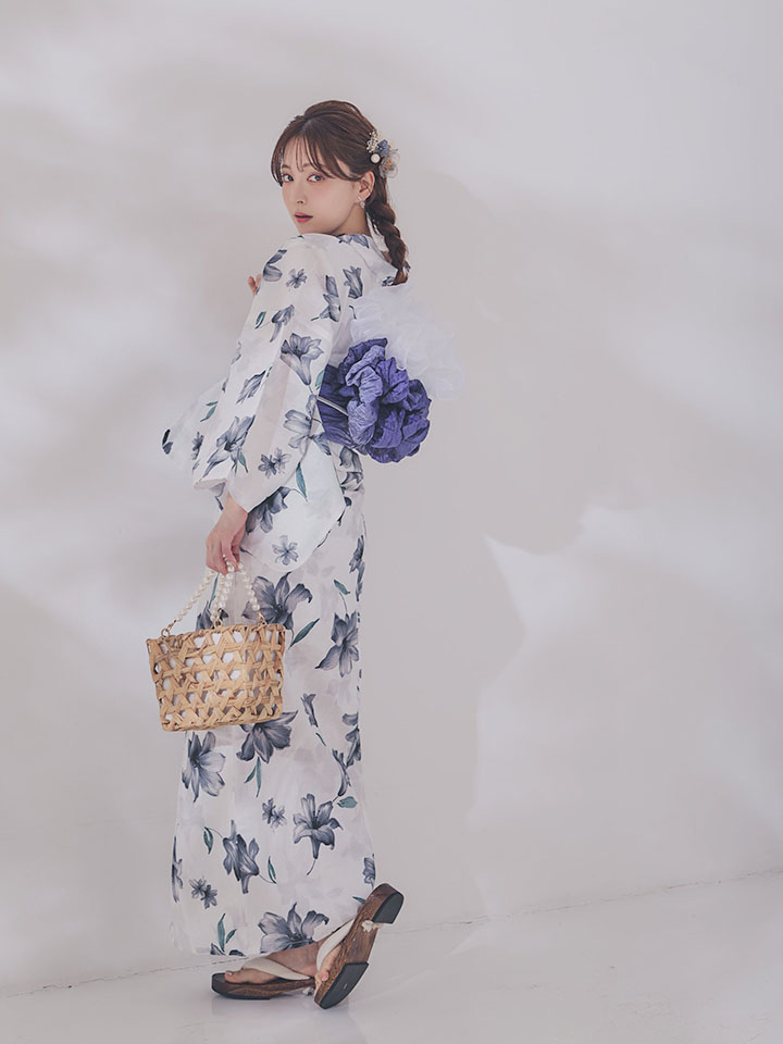 【即日発送】ブルーリリーフラワー浴衣 【浴衣3点セット 浴衣/帯/下駄】[OF04] [Y-9150-wk-IV-F-26MR-260427]