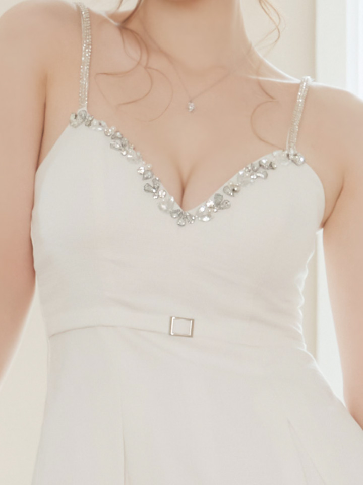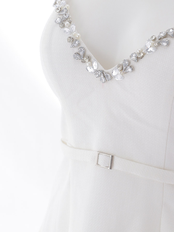 谷間見せデザインが程よくセクシーな印象をプラスし、上品さの中に華やかさを感じられる一着に仕上げました。