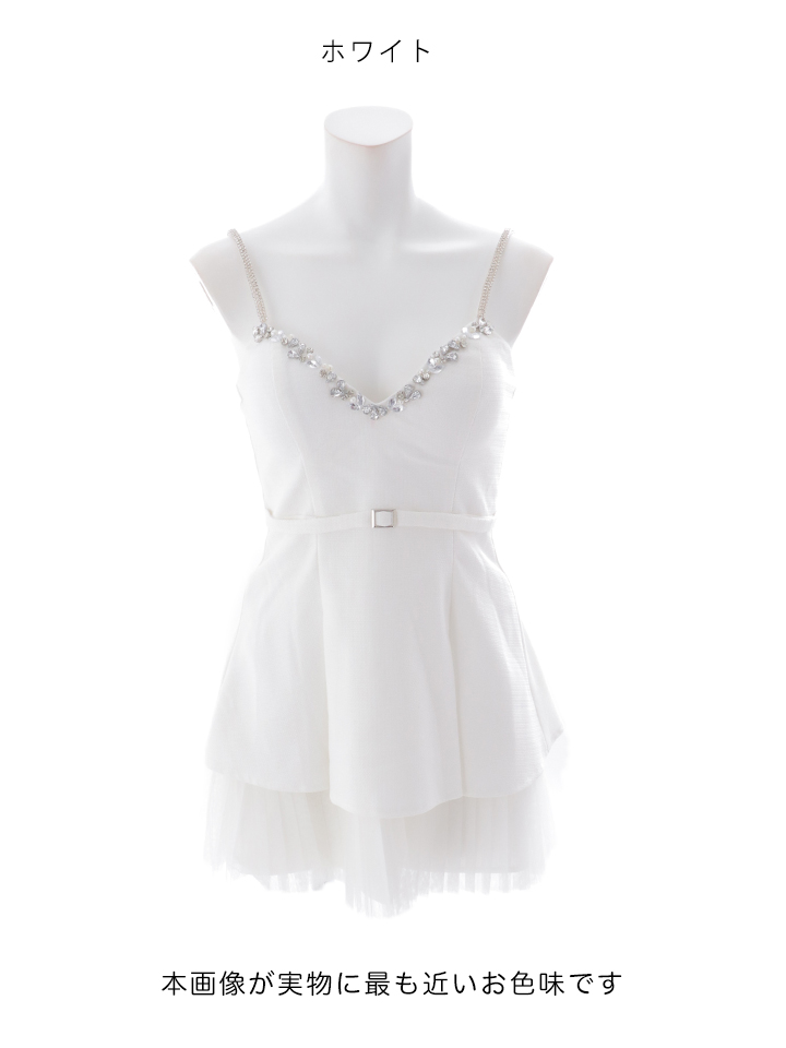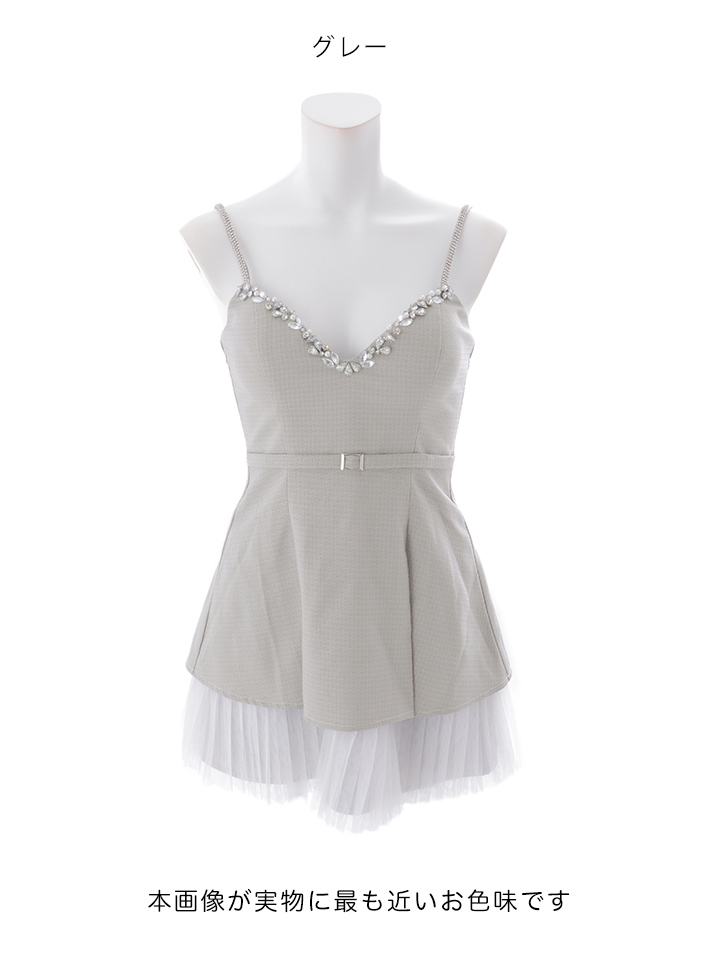 送料無料!キャミソール/ペプラム/チュール/プリーツ/ビジュー/Aライン/谷間見せ/ミニドレス/キャバドレス【XS-Mサイズ/3カラー】【予約商品/5月中旬発送予定】[OF01]【SB】dzwAG [3640SBdzwAG-260427-2]