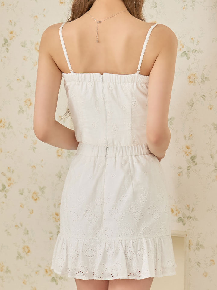 ナチュラルなレース生地が優しい雰囲気を演出するガーリーなミニドレス。