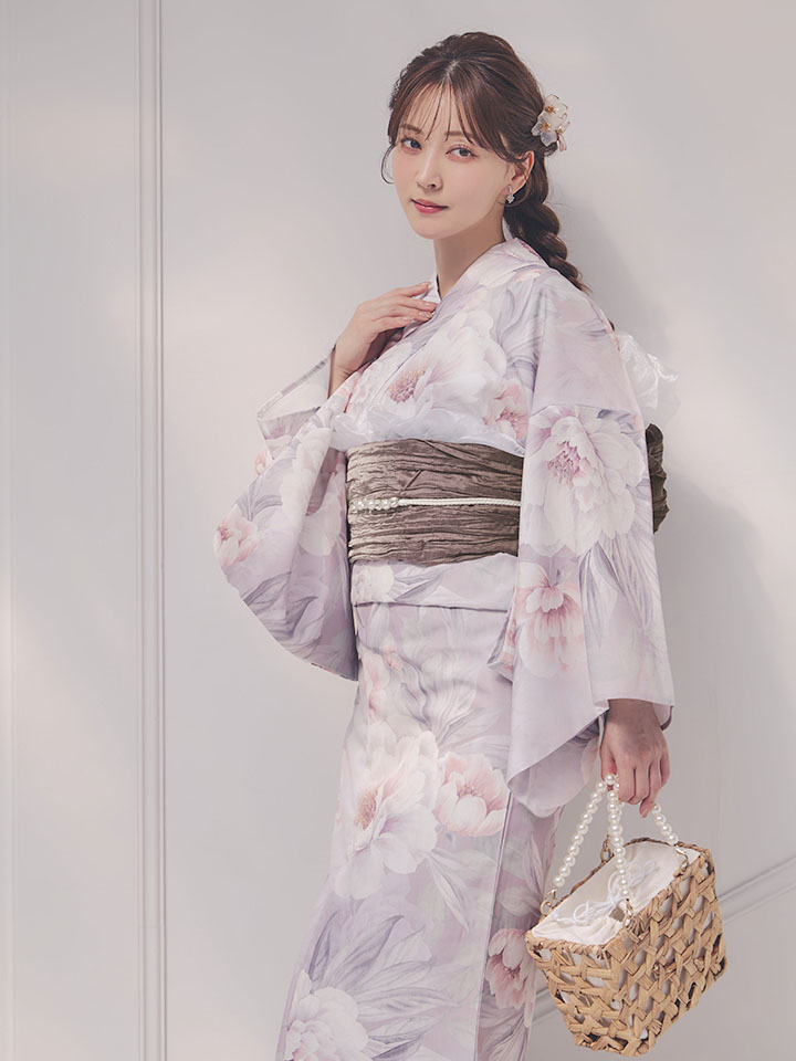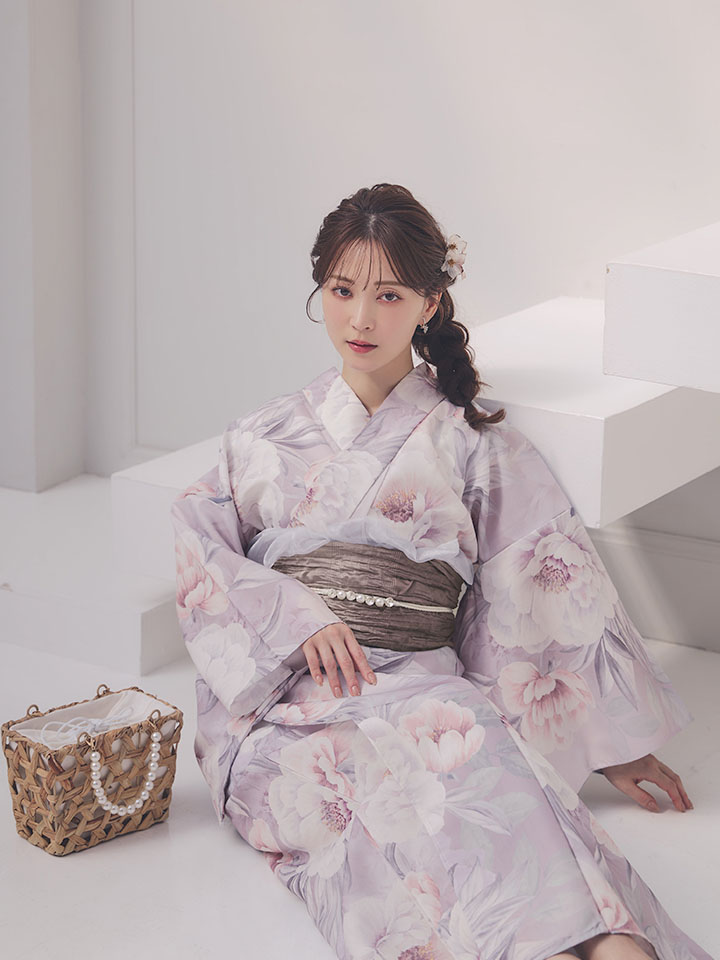 送料無料!【即日発送】大輪の芍薬花柄グレー浴衣【浴衣3点セット 浴衣/帯/下駄】[OF04] [Y-9415-ok-GY-F-26MR-260427]