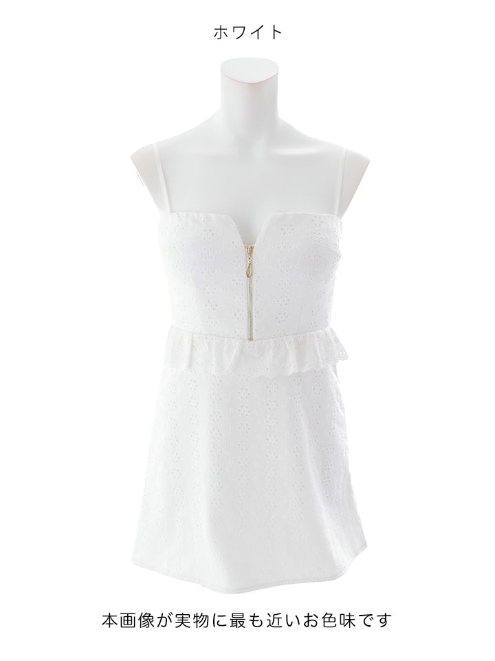 花柄/コットン/レース/フリル/フロントジップ/キャミソール/ペプラム/Aライン/ミニドレス/キャバドレス【S-Mサイズ/1カラー】[OF03] 【YN】dzwvBF [5923YNdzwvBF-260428-1]